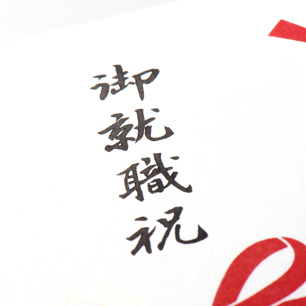 和紙にシルク印刷が鮮やかで美しい、御就職祝の印刷多当です。