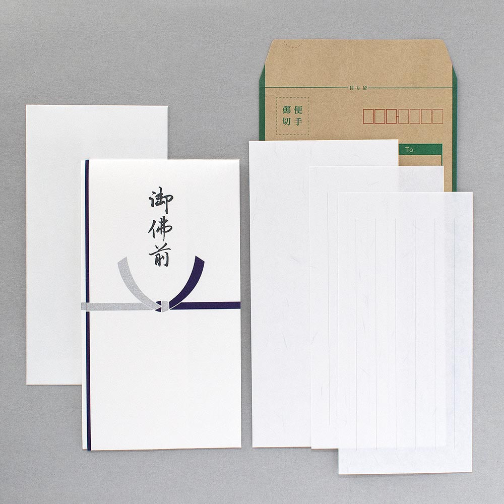 お悔やみの気持ちを現金書留で送りましょう。多当、添え状(一筆箋・封筒)、現金書留用封筒がセットになっています。事前に準備して、郵便局の窓口ですぐに送ることが出来ます。
