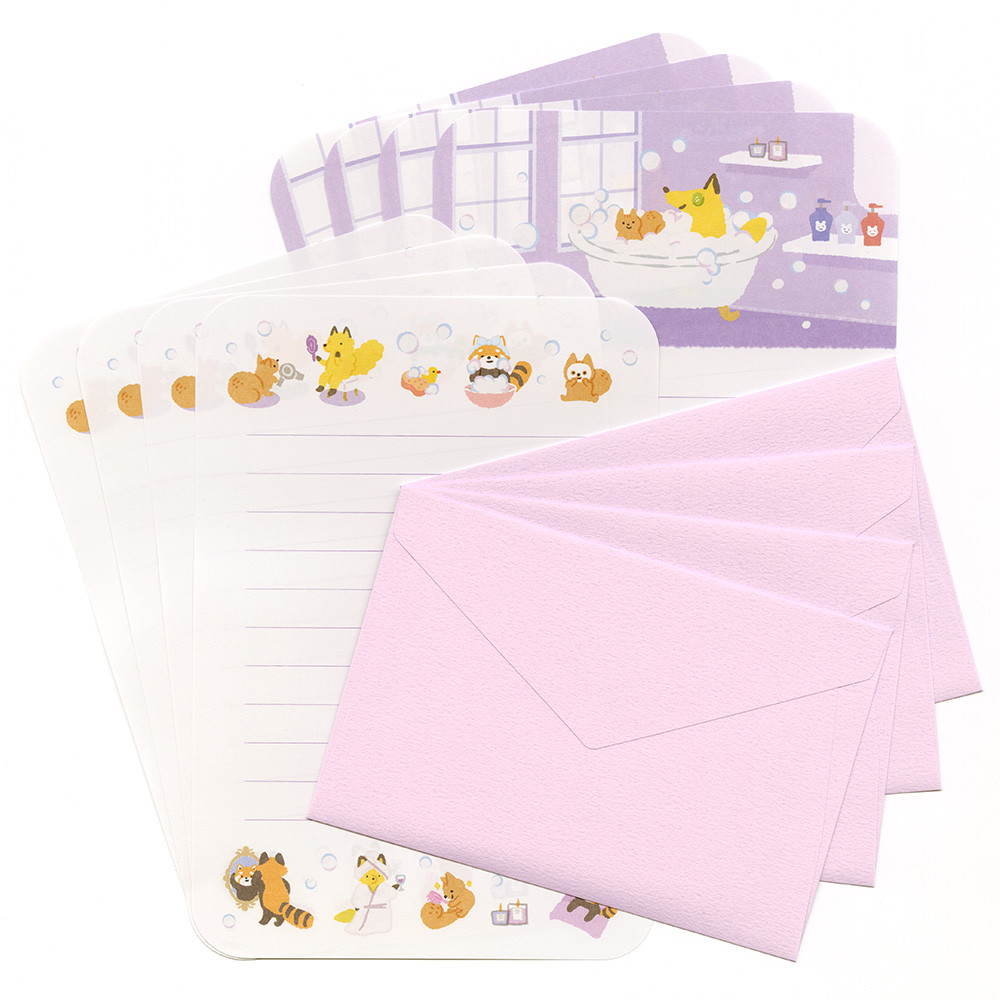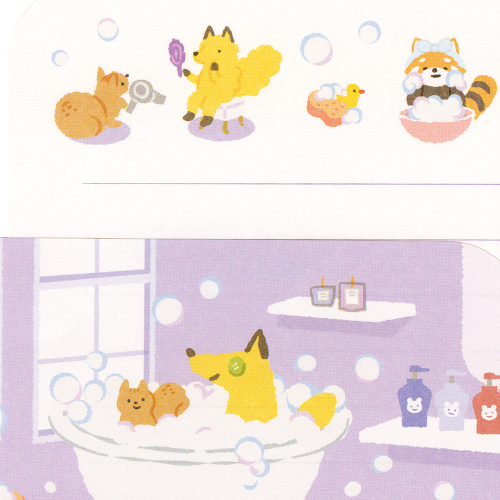 趣味の美容を楽しむ動物たちを描いたレターです。