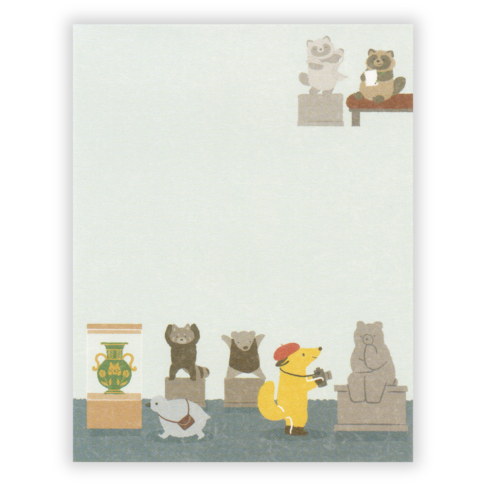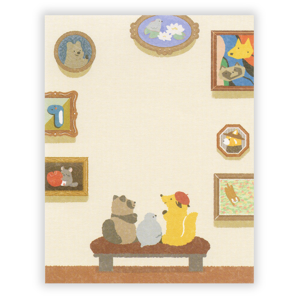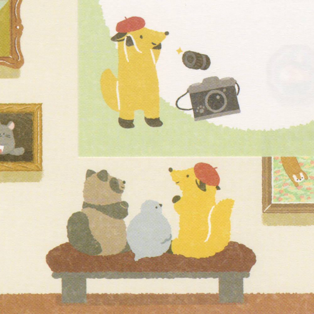 趣味の美術館めぐりを楽しむ動物たちを描いたメモです。
