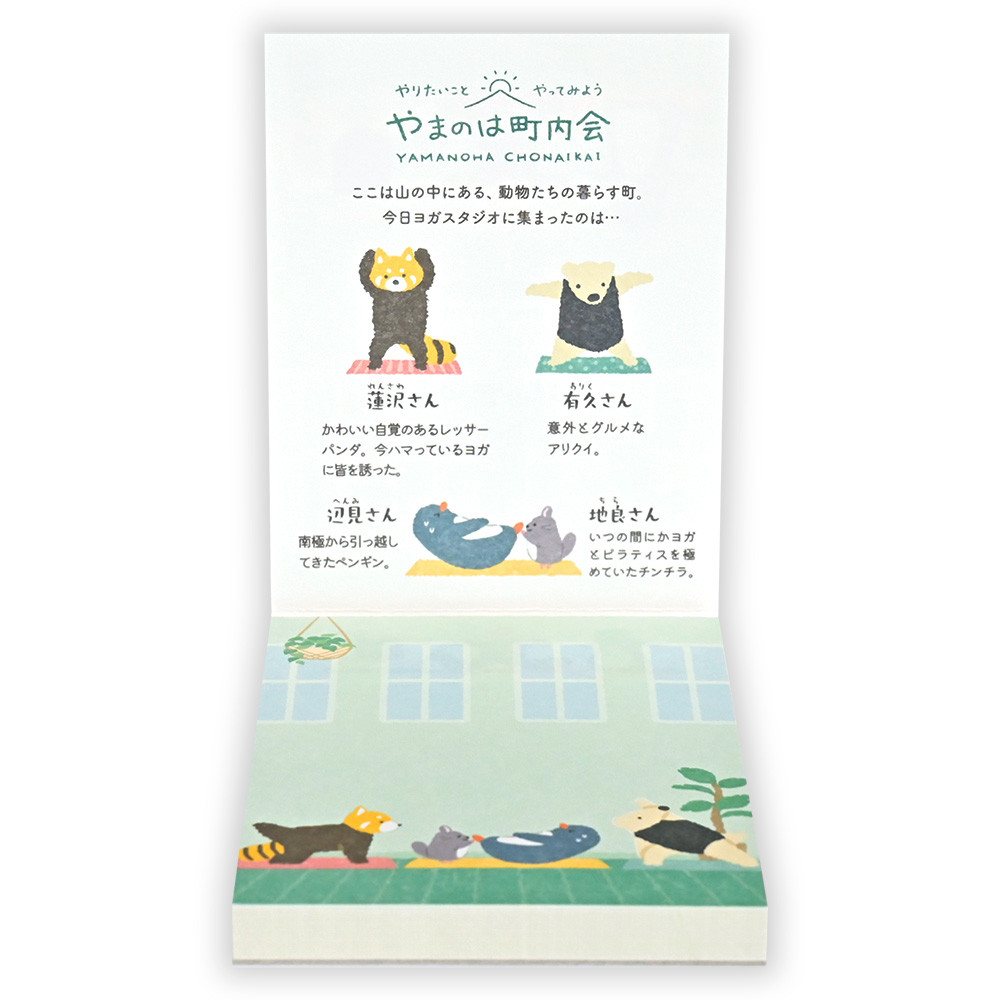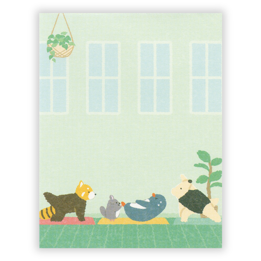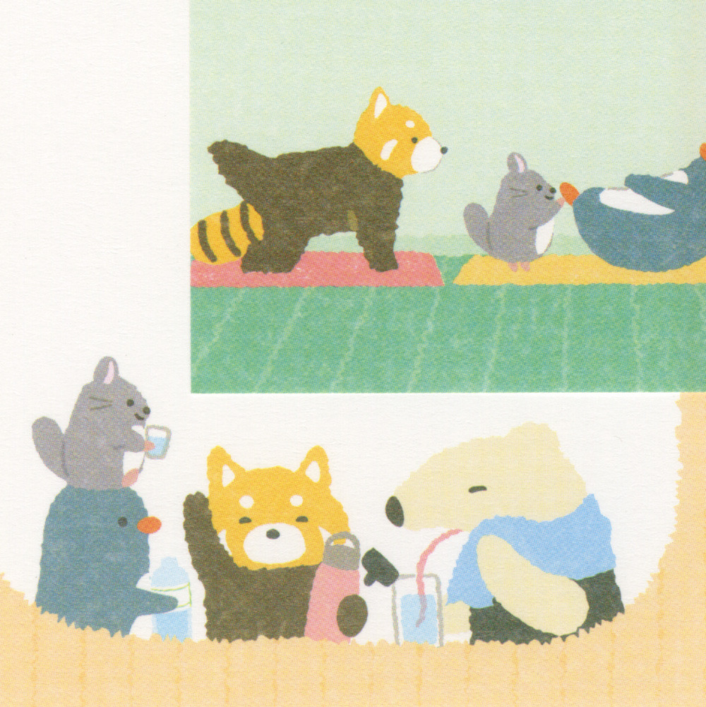 趣味のヨガを楽しむ動物たちを描いたメモです。