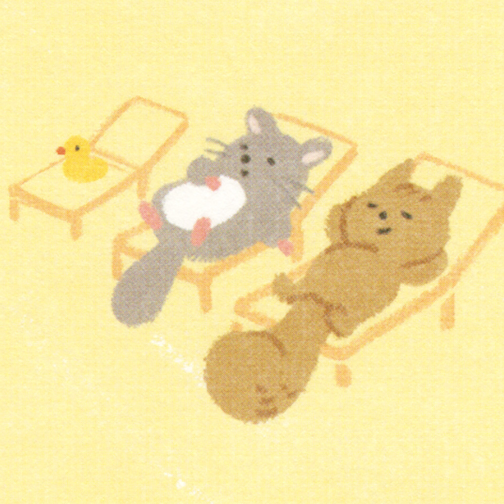 せっかちでお調子者のリス。町内会の仲間と趣味のサウナに来た。