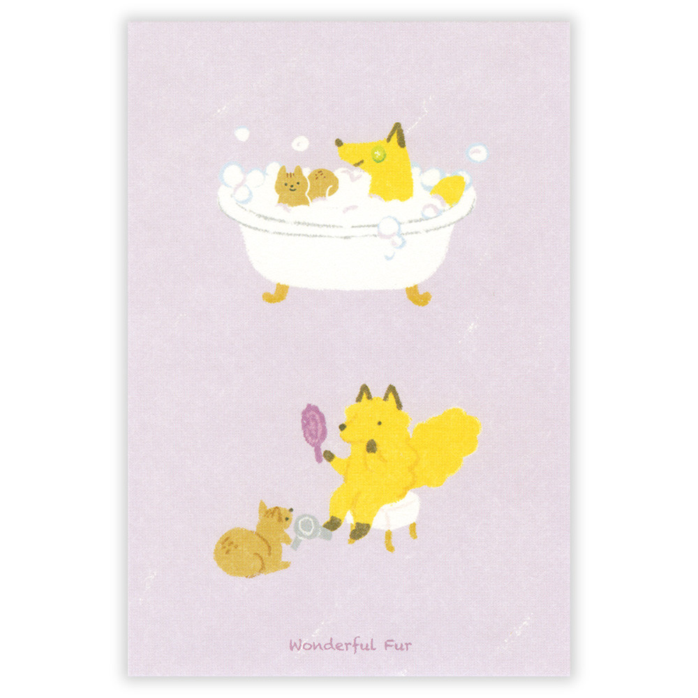 趣味の美容を楽しむ動物たちを描いたポストカードです。