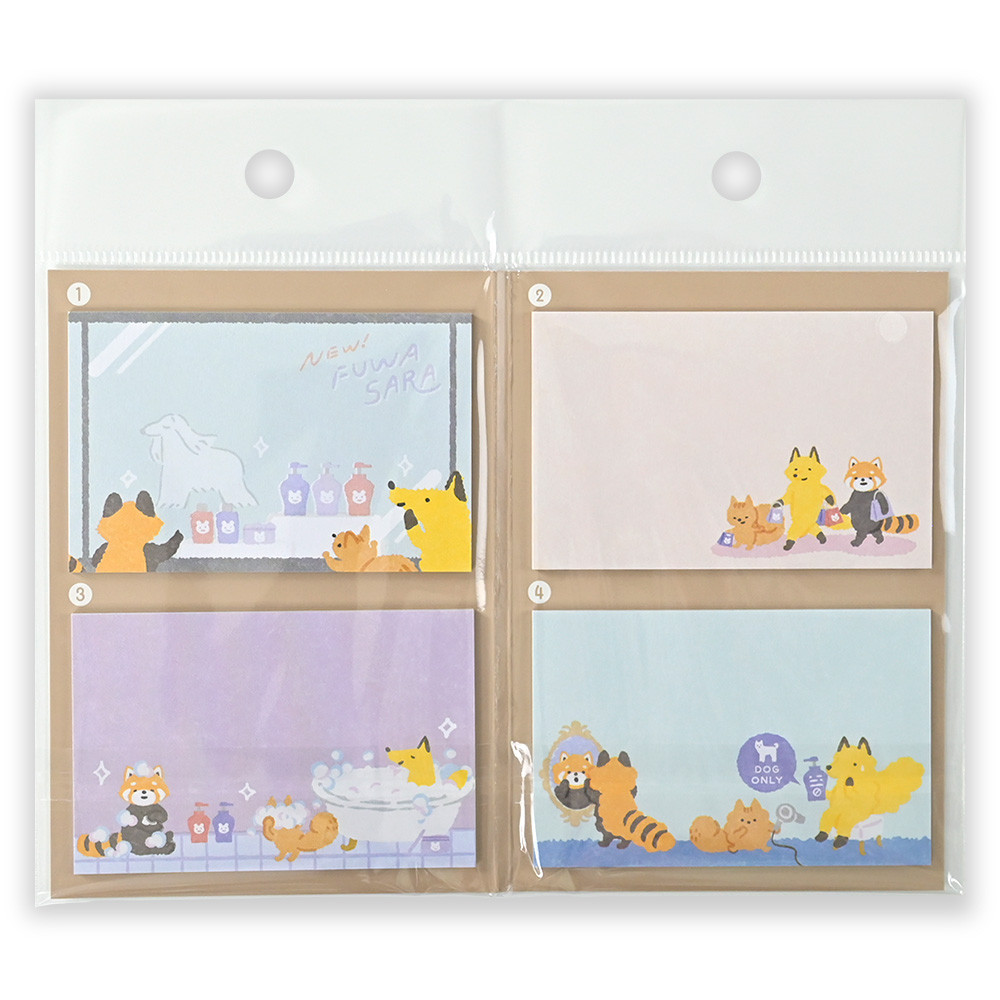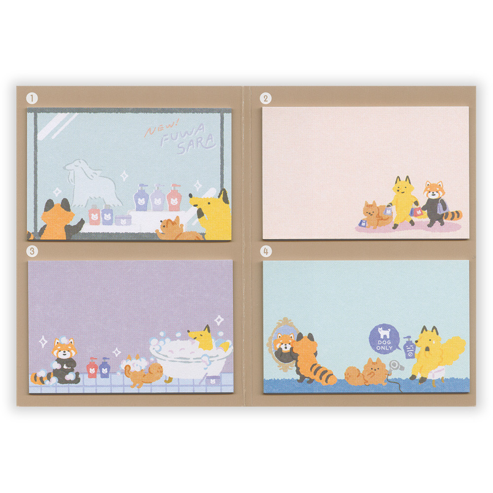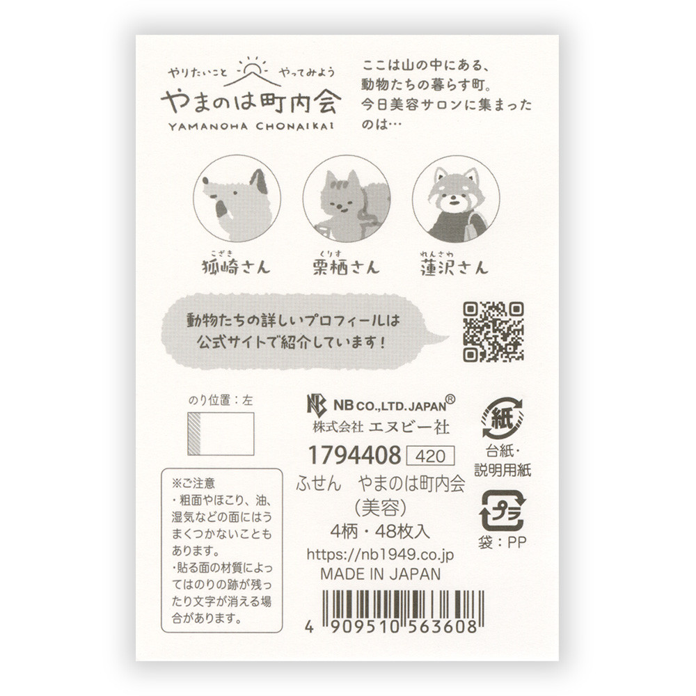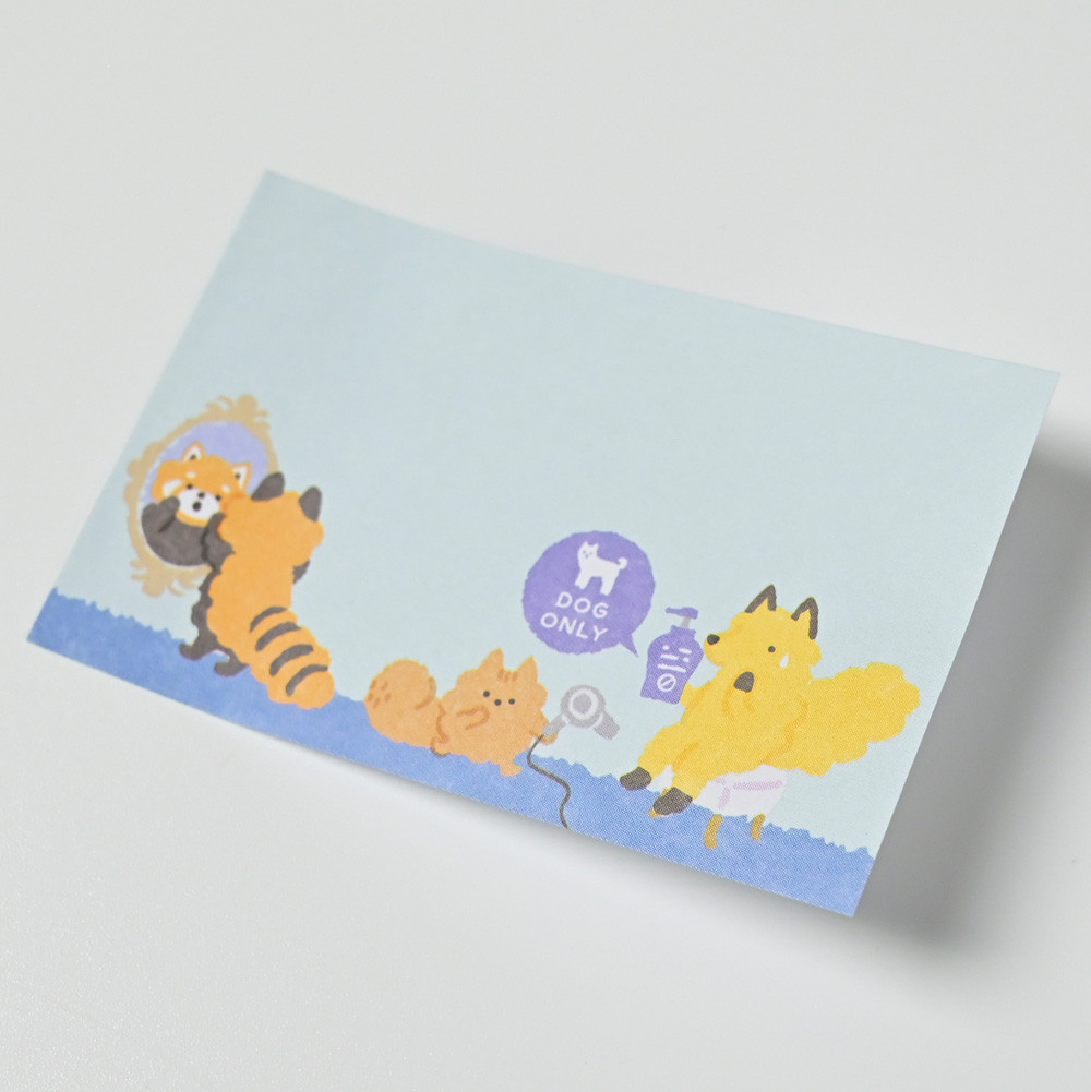 趣味の美容を楽しむ動物たちを描いた、開くたびに笑顔がこぼれるブック型の4コマ漫画ふせんです。
