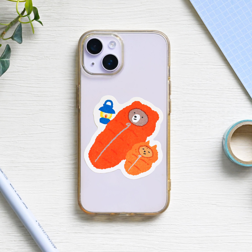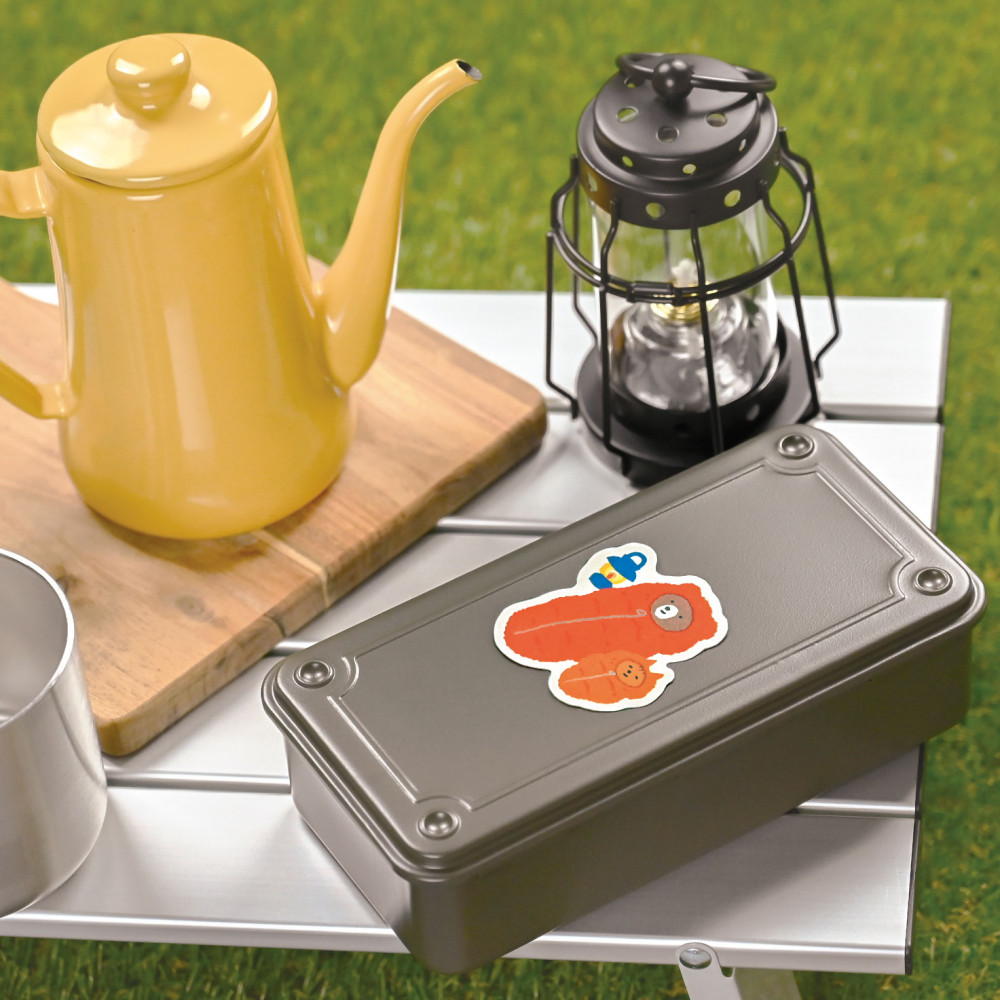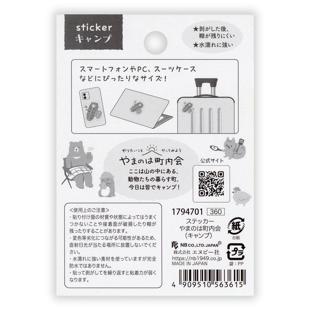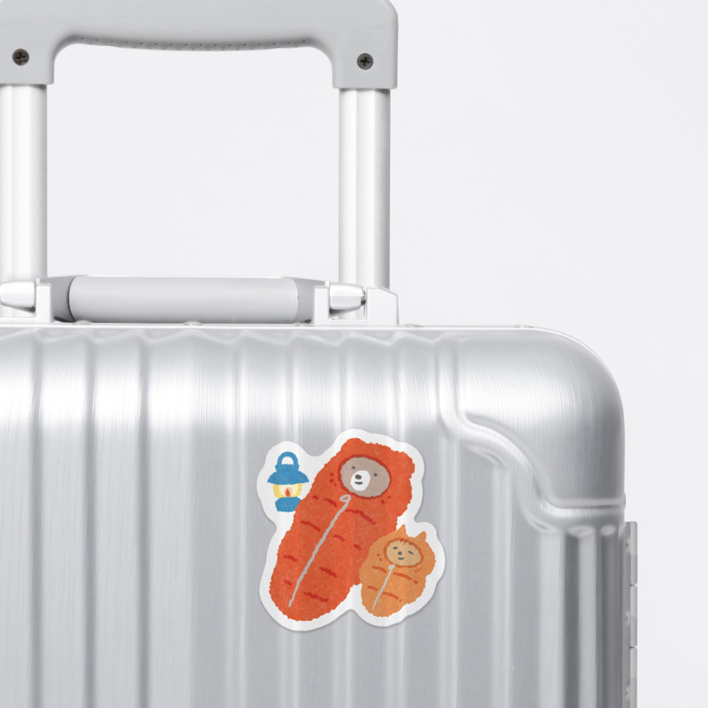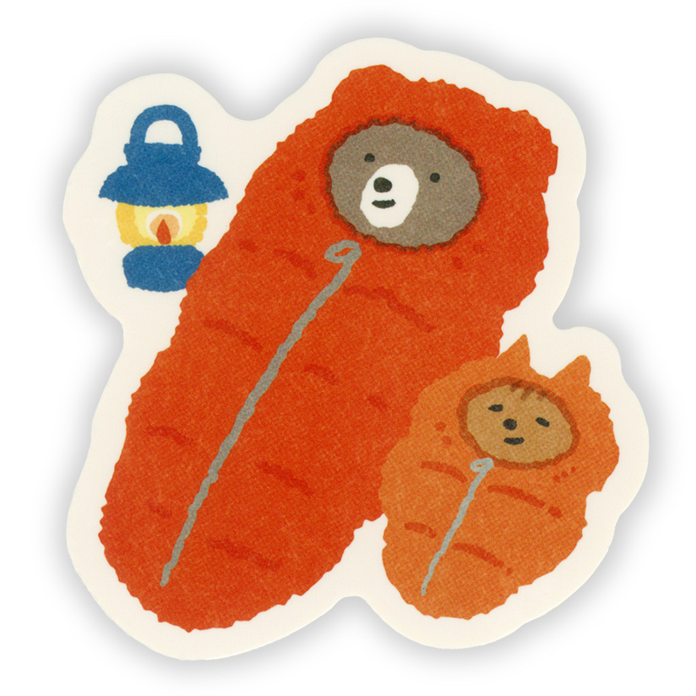 趣味のキャンプを楽しむ動物たちを描いたステッカーです。