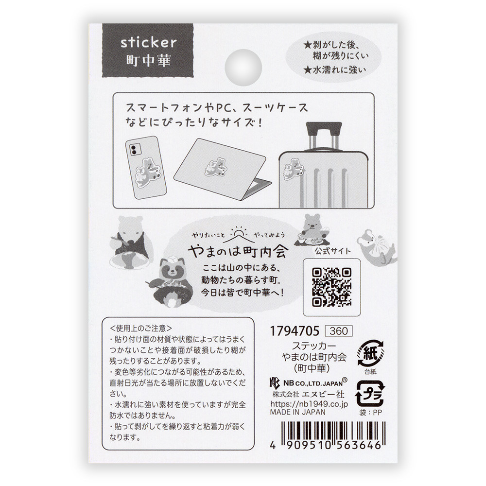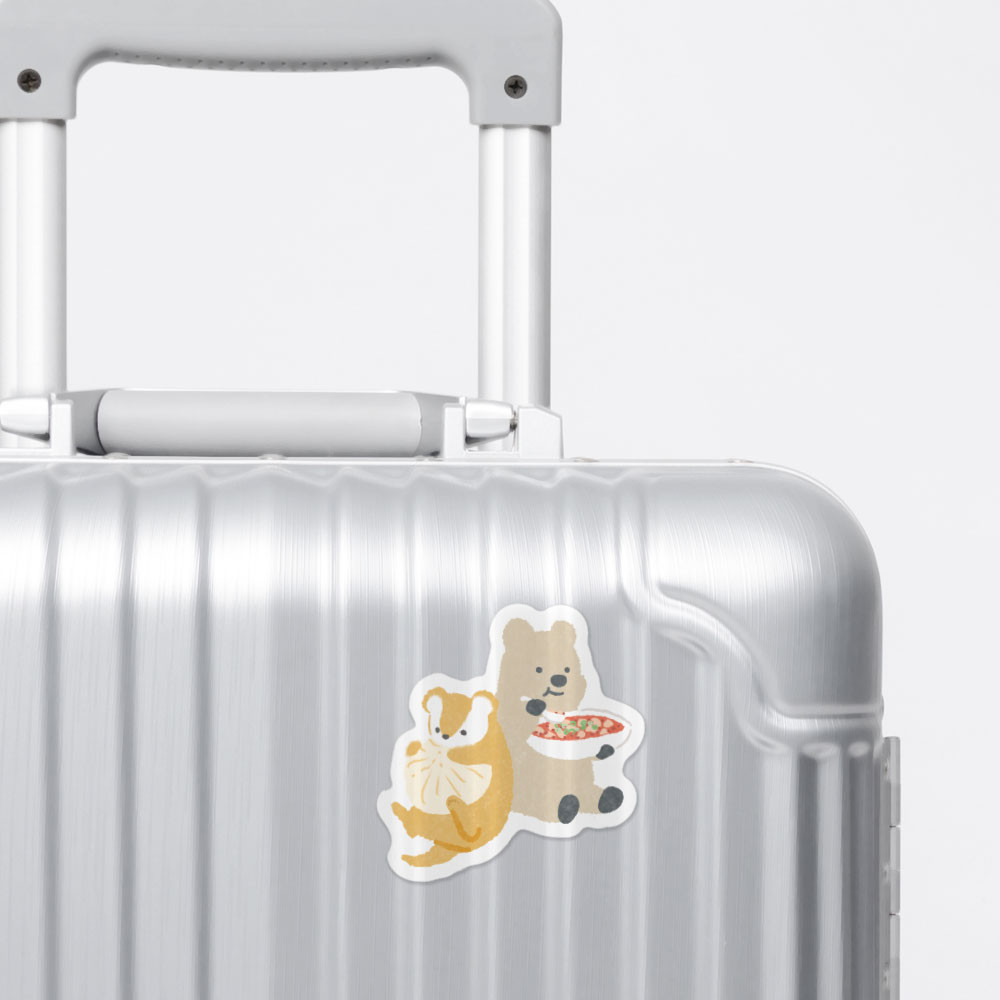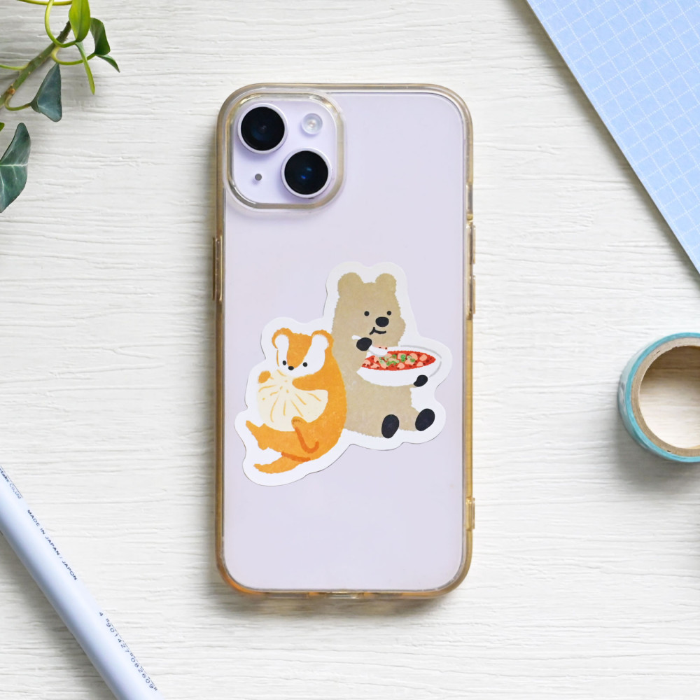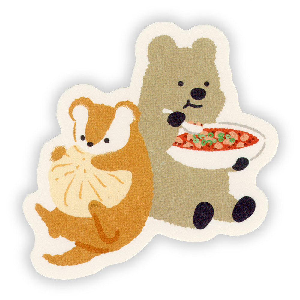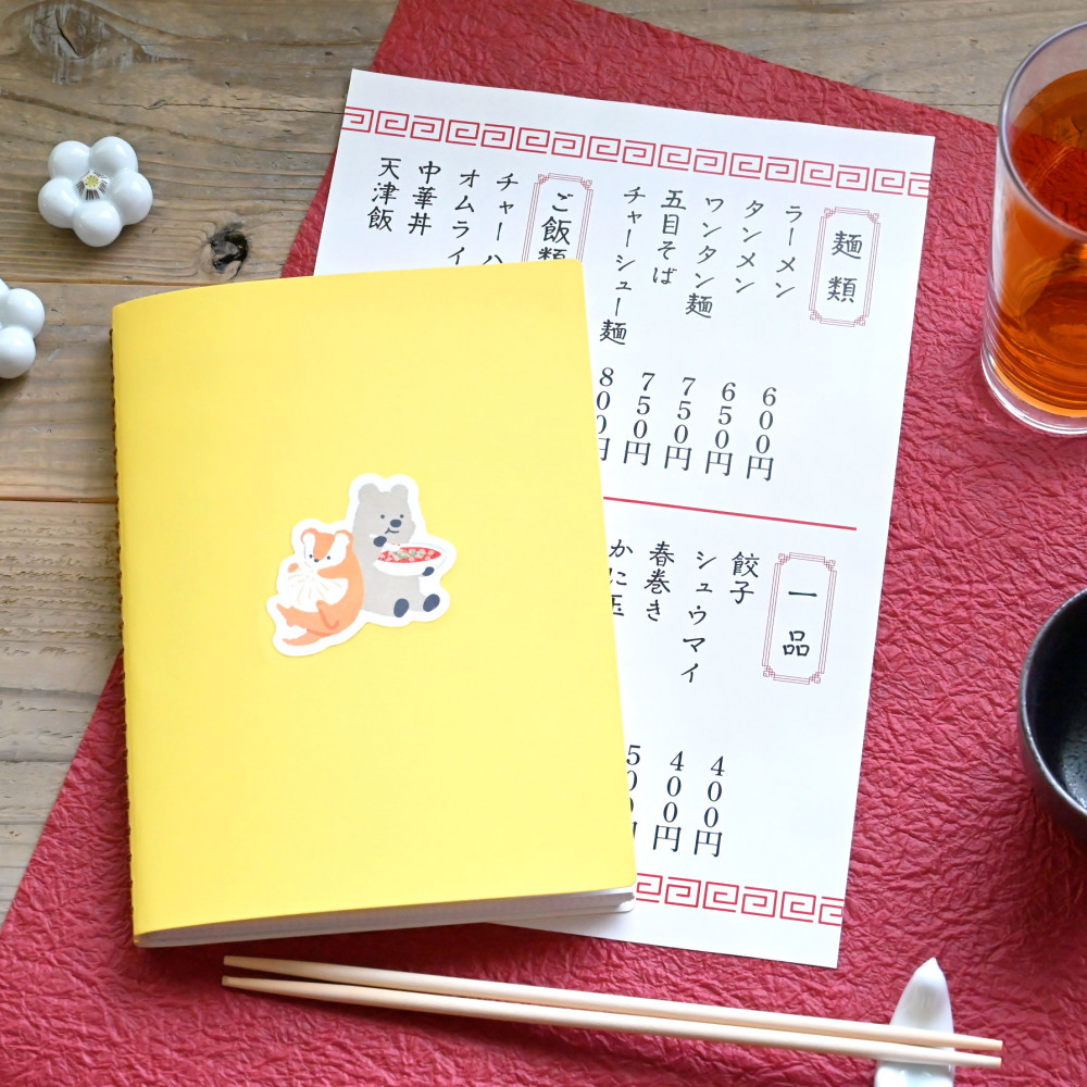 町中華グルメを満喫する動物たちを描いたステッカーです。