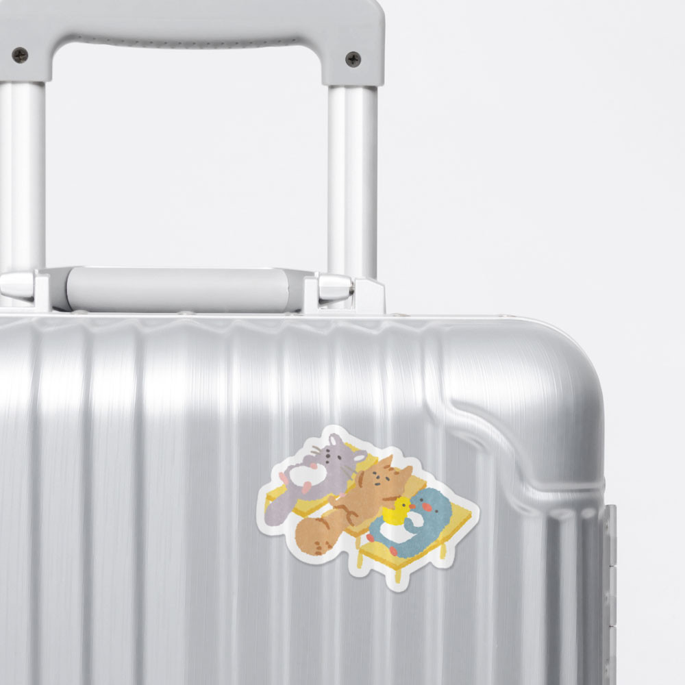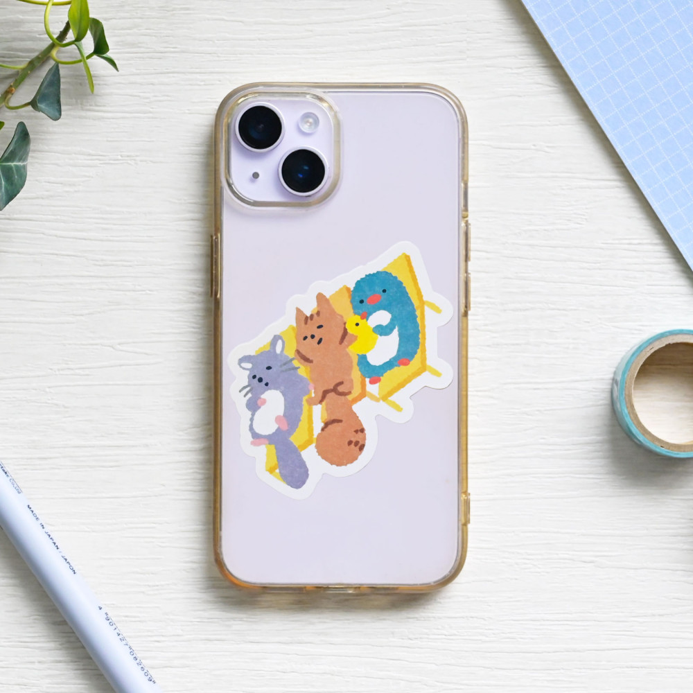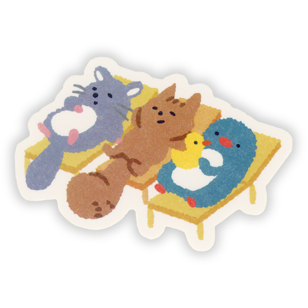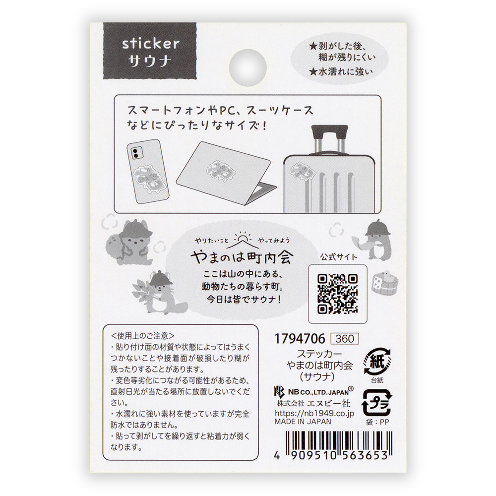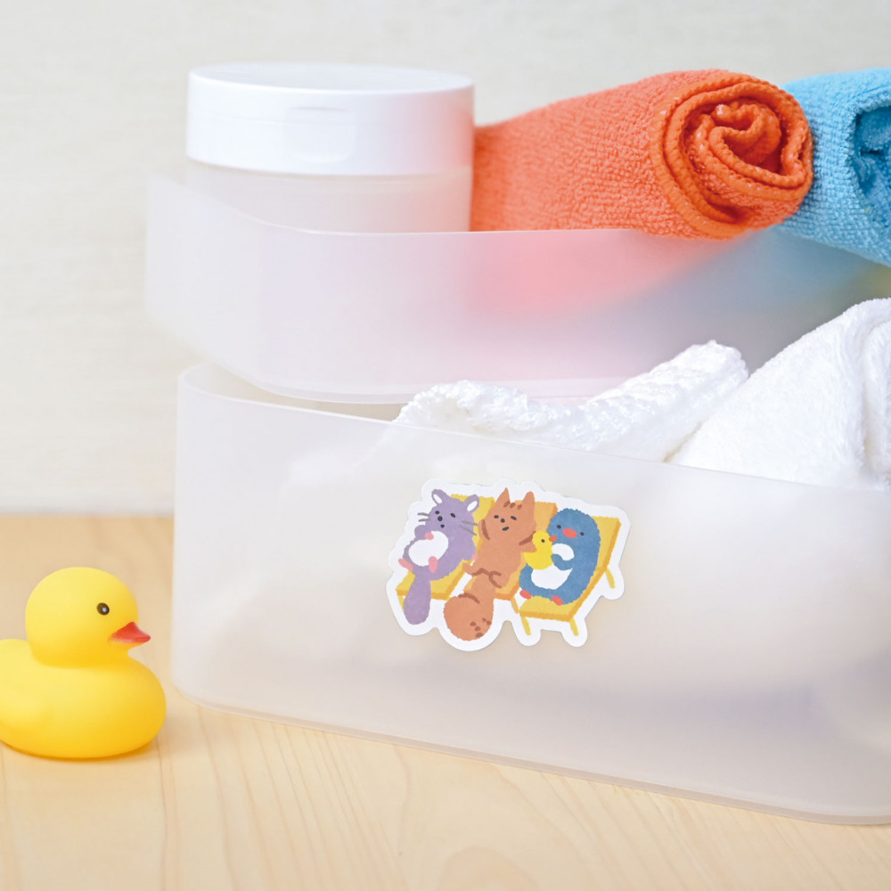 趣味のサウナを楽しむ動物たちを描いたステッカーです。