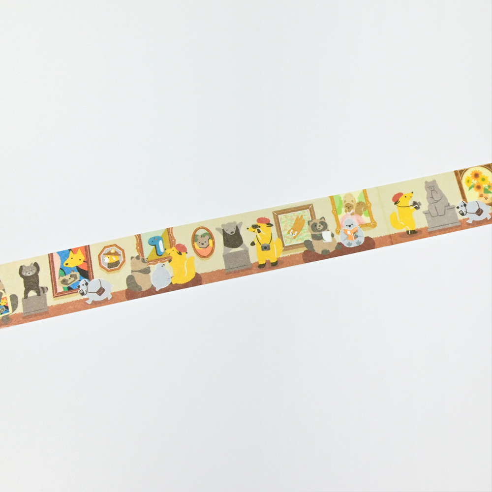 趣味の美術館めぐりを楽しむ動物たちを描いたマスキングテープです。