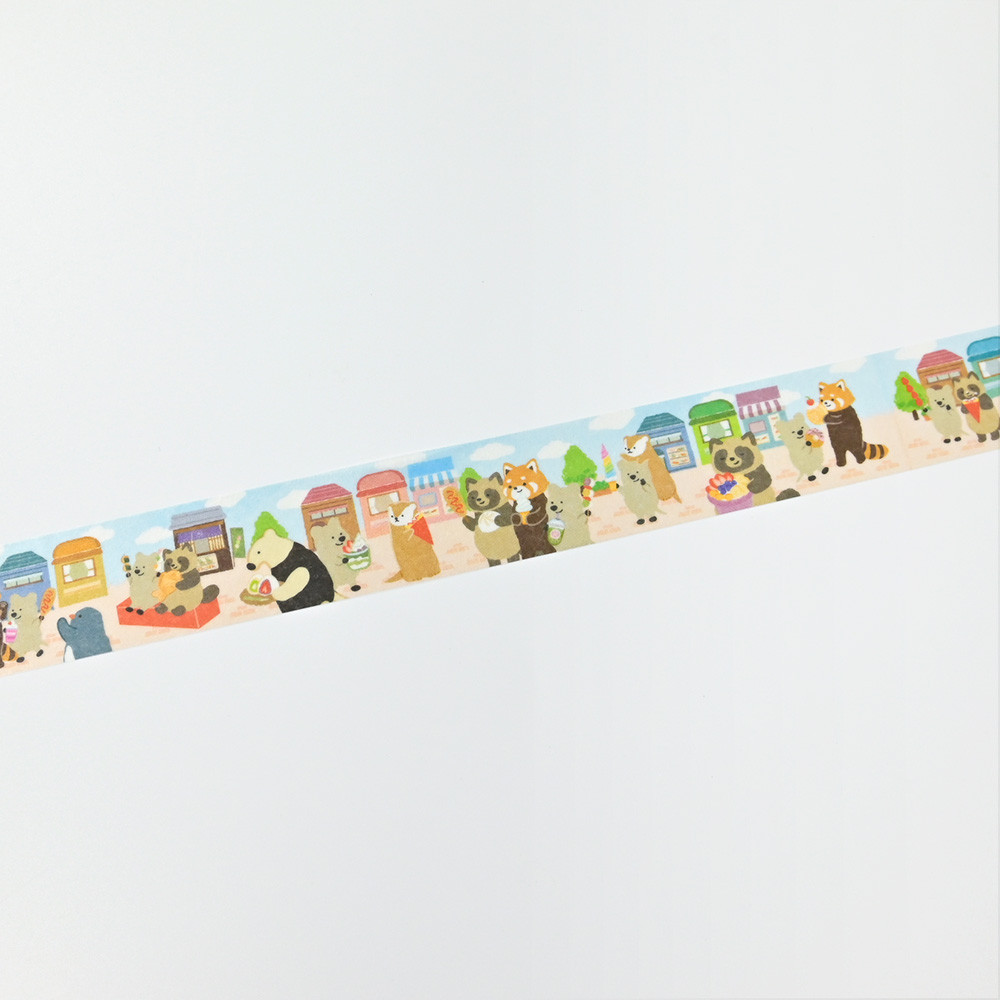 趣味の食べ歩きを楽しむ動物たちを描いたマスキングテープです。