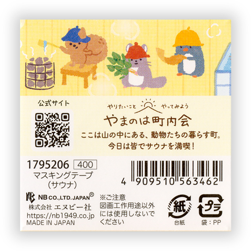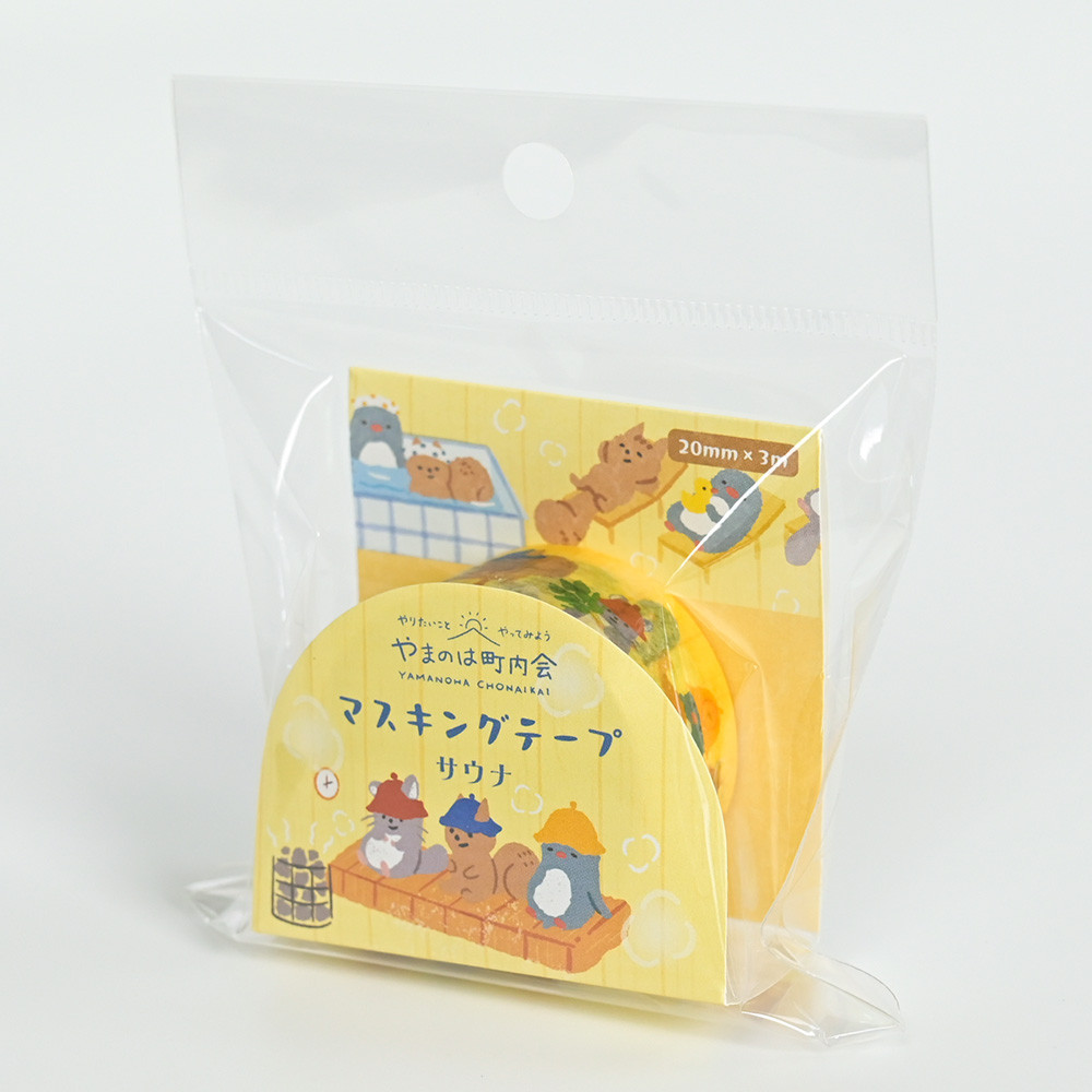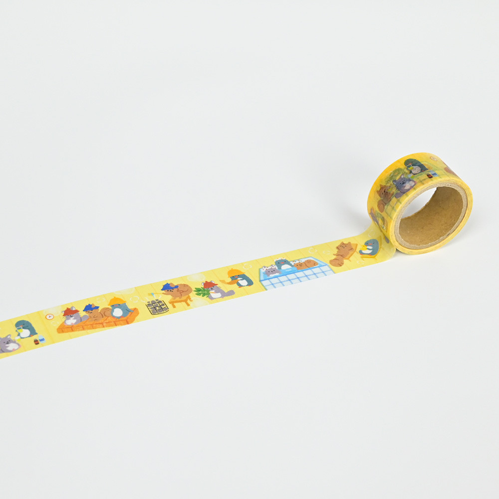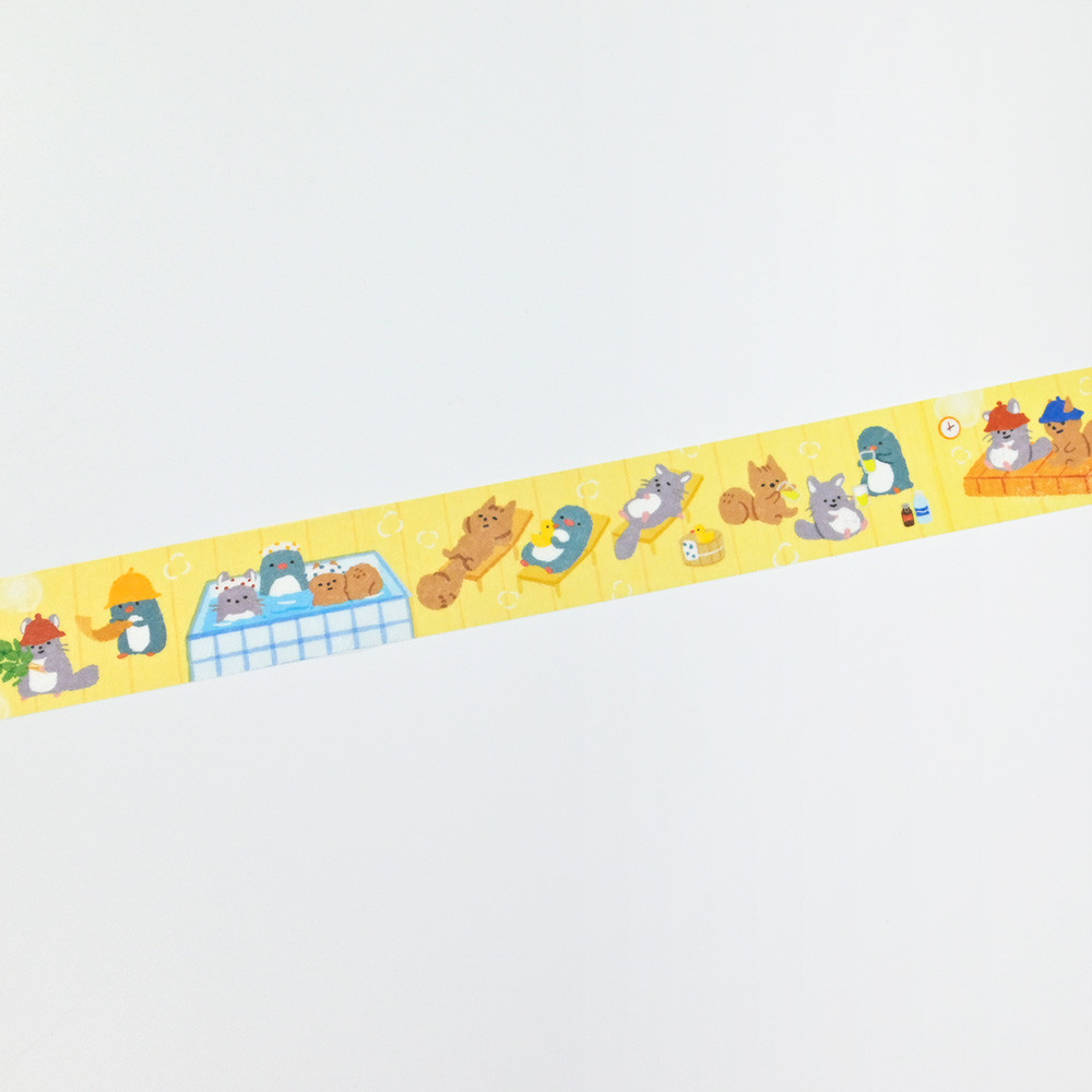 趣味のサウナを楽しむ動物たちを描いたマスキングテープです。