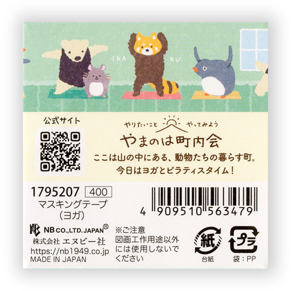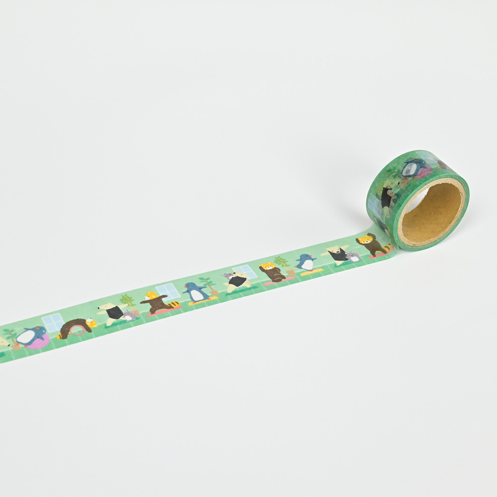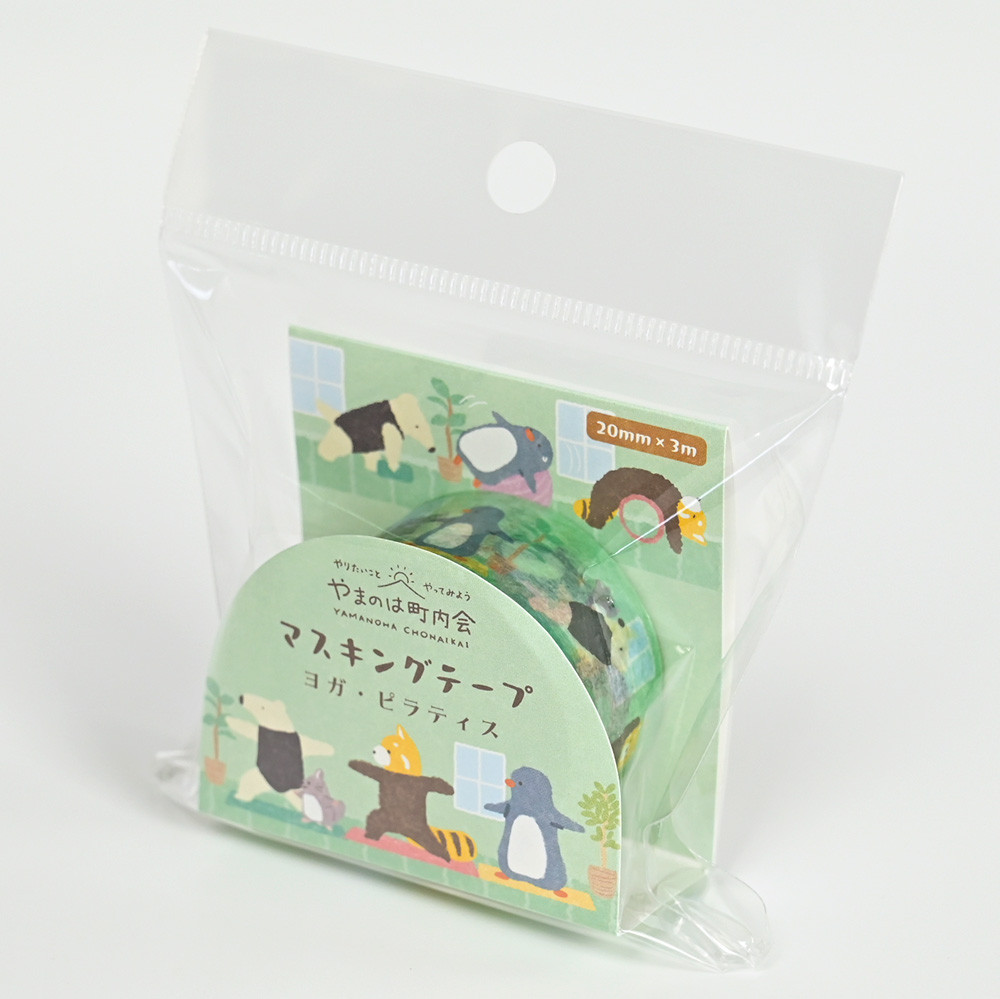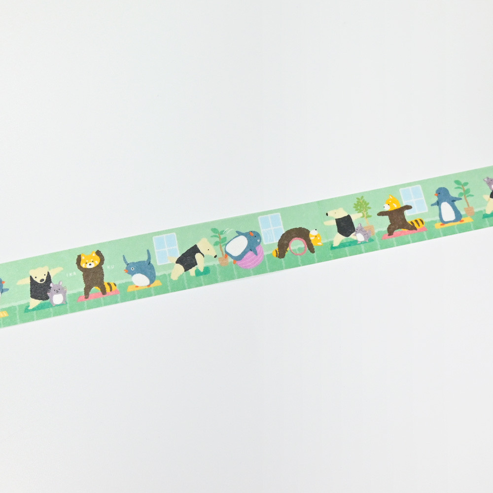 趣味のヨガやピラティスを楽しむ動物たちを描いたマスキングテープです。