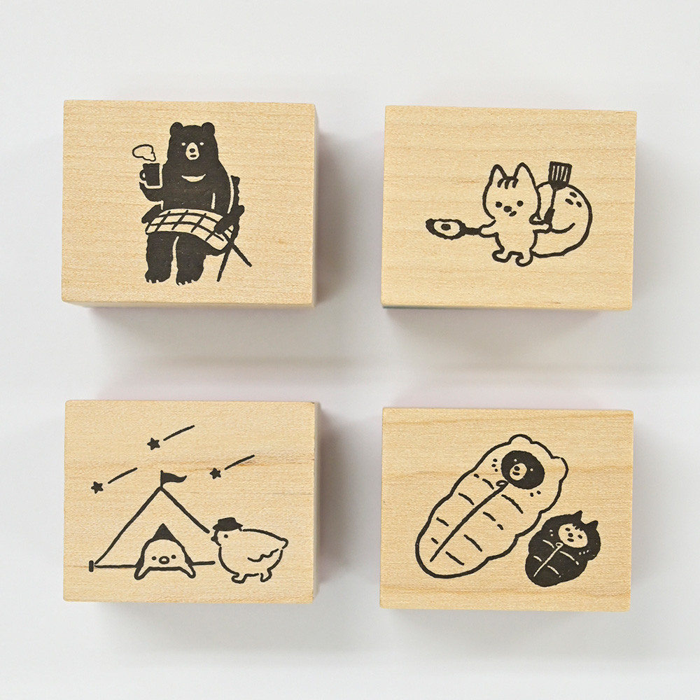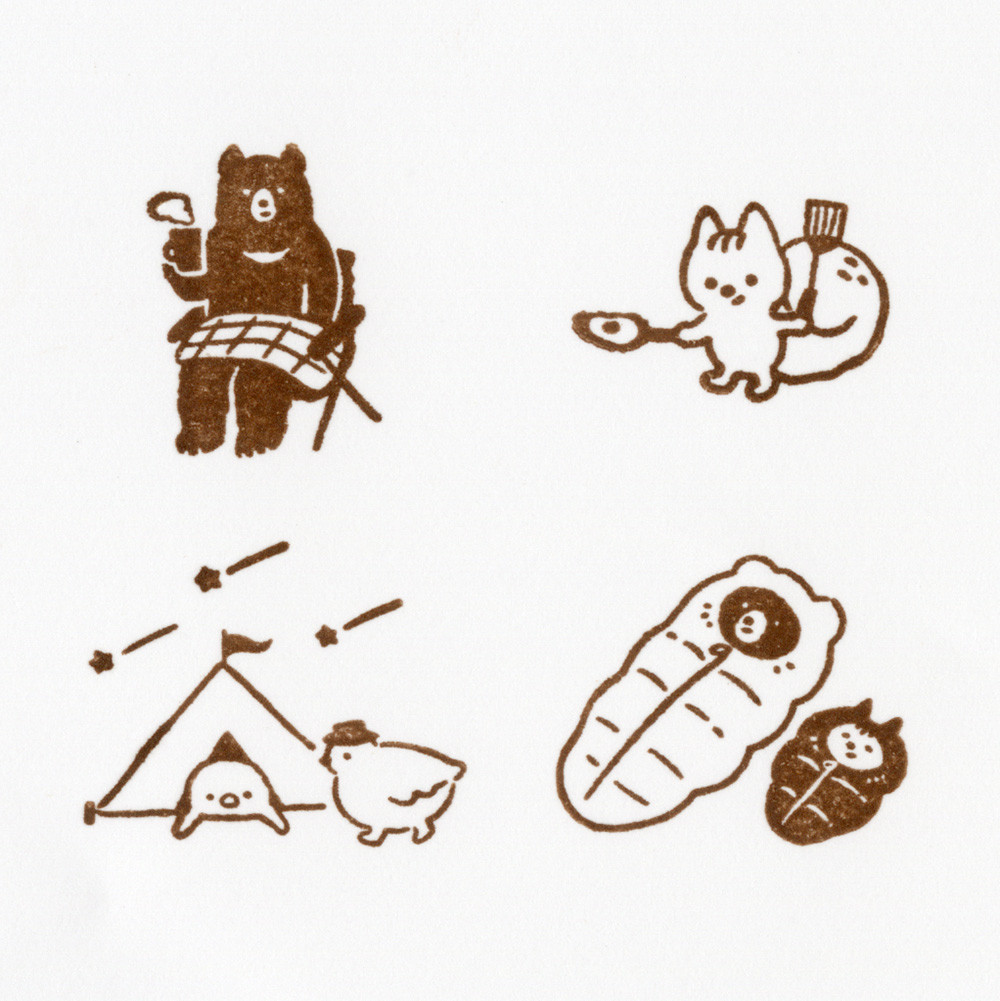 趣味のキャンプを楽しむ動物たちのスタンプです。