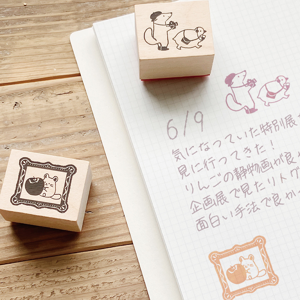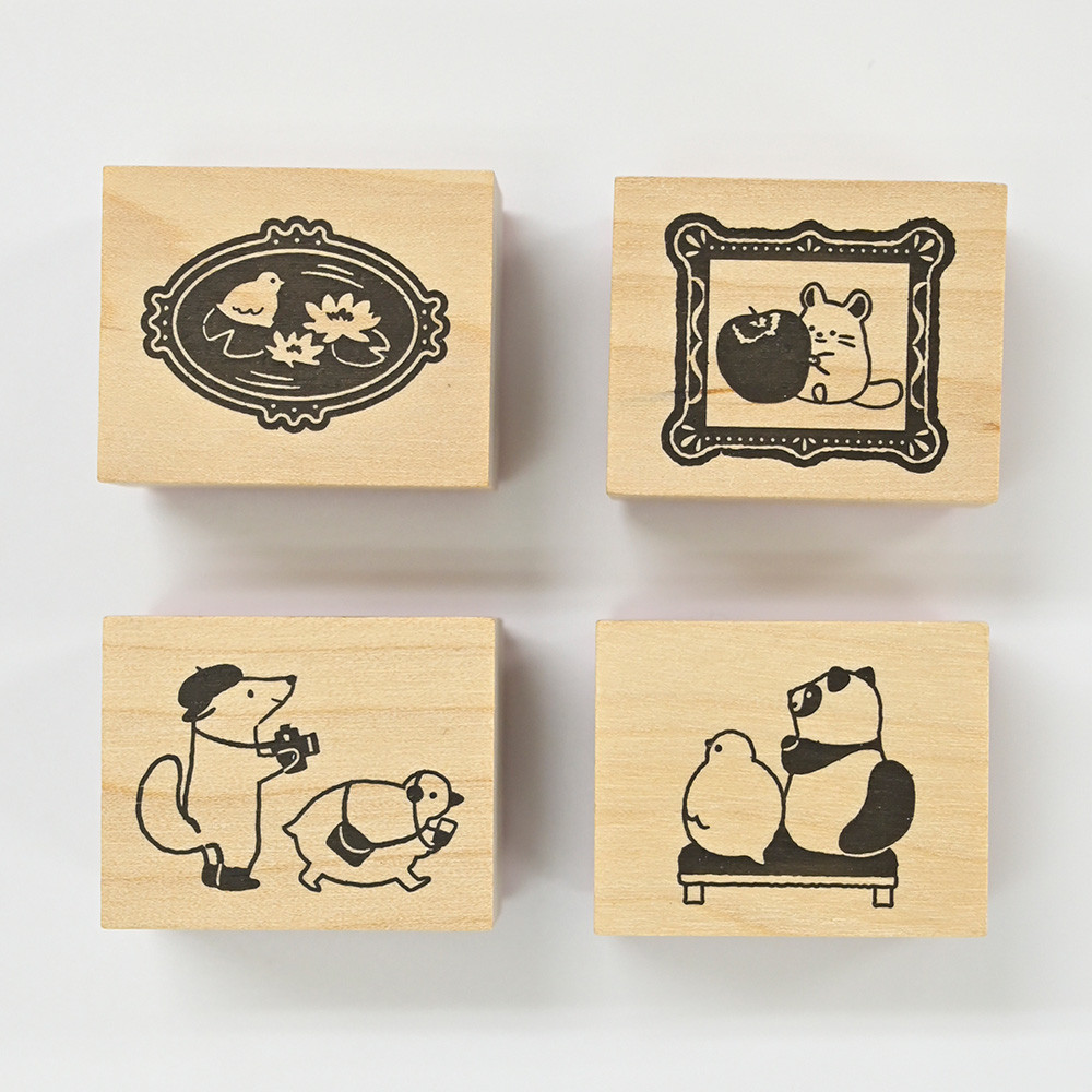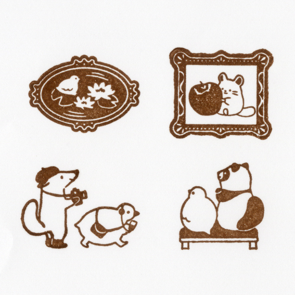 趣味の美術館めぐりを楽しむ動物たちのスタンプです。