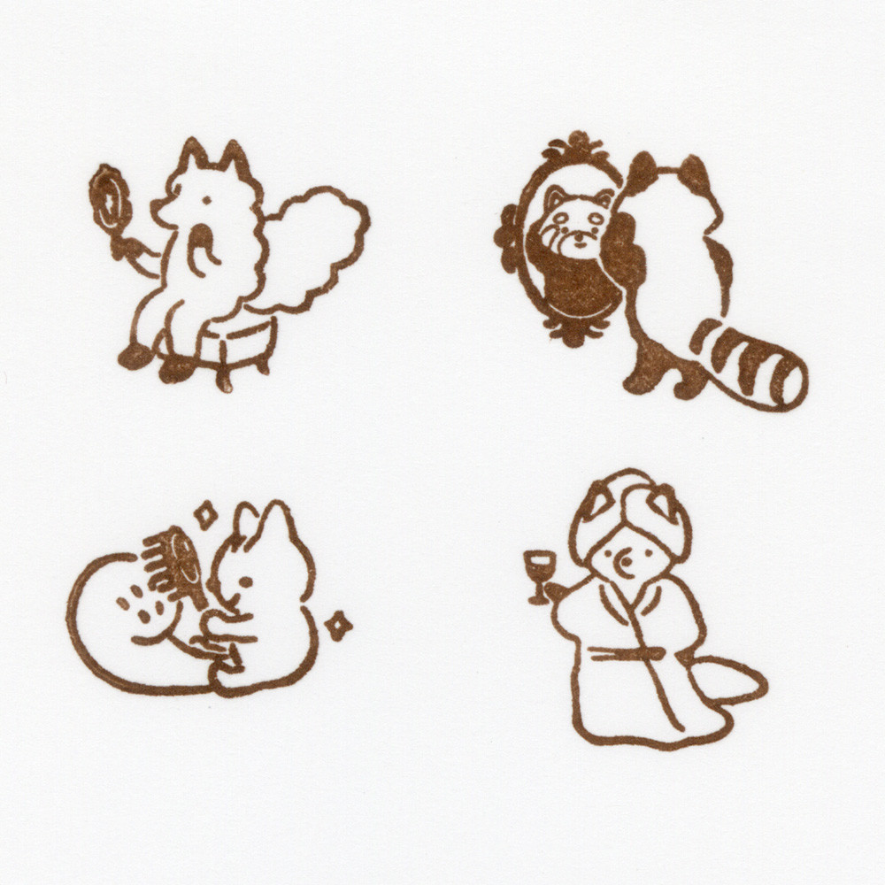 紳士な性格のキツネ。町内会の仲間と今日は美容タイム。