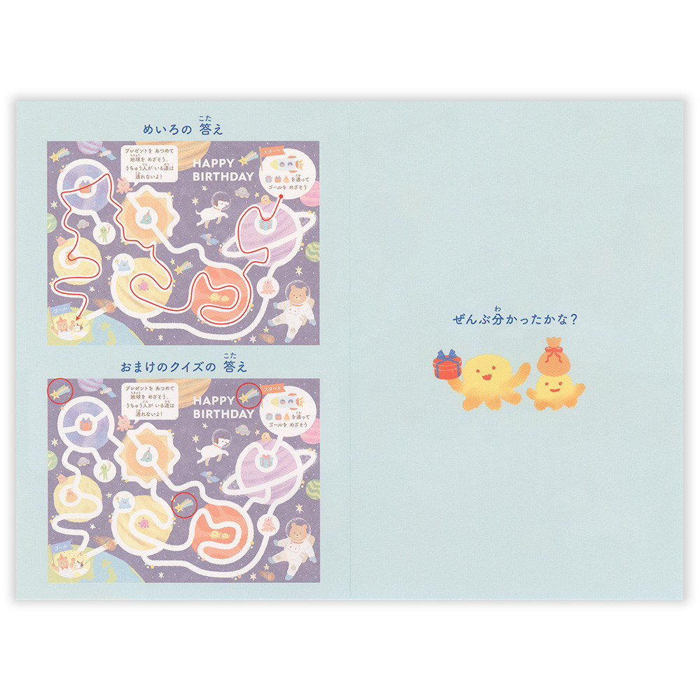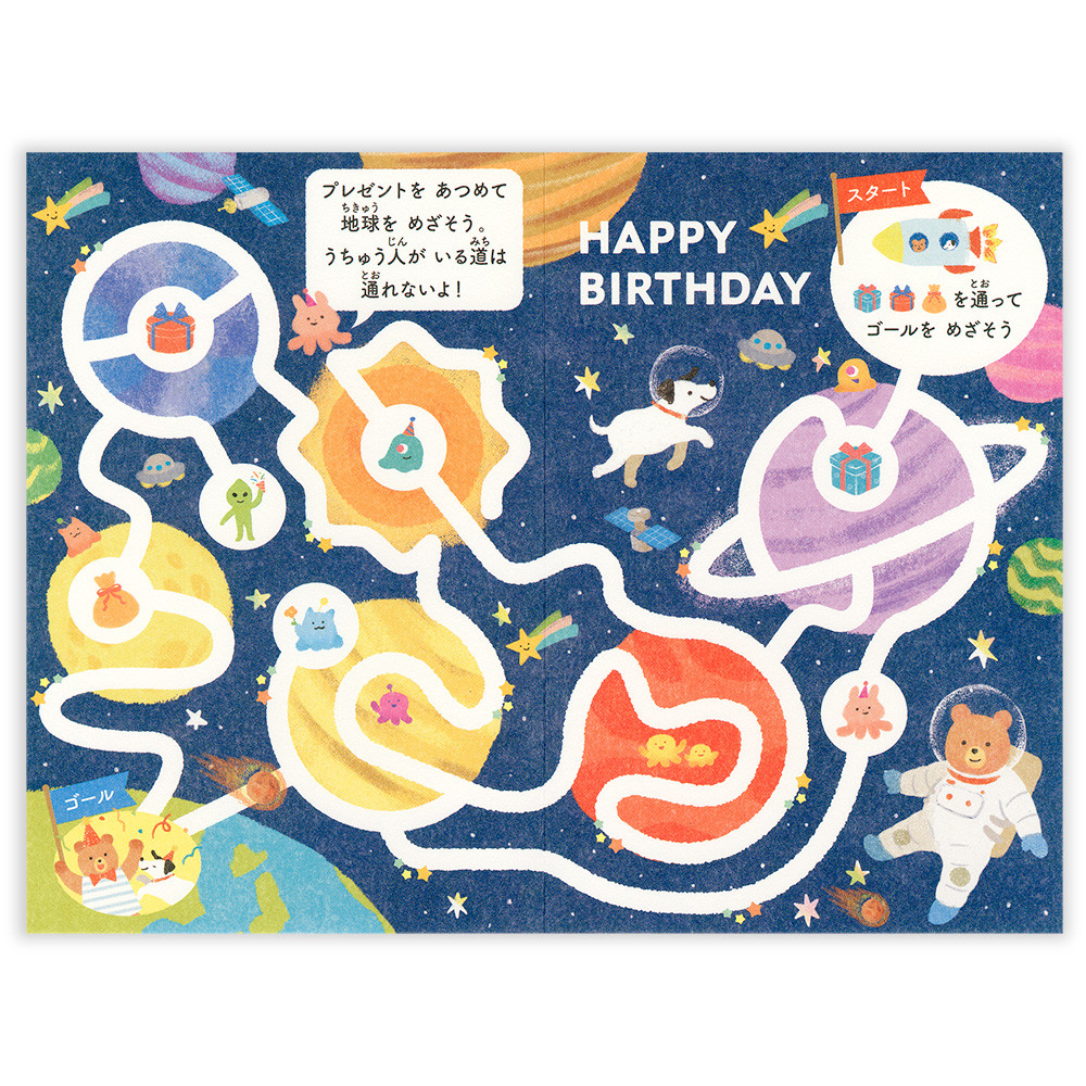お祝いの気持ちと一緒に、迷路で遊ぶ楽しみも贈れるバースデーカードです。