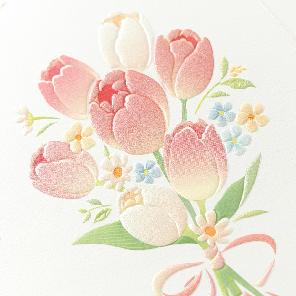 「幸福」「思いやり」などの花言葉を持つチューリップのブーケを描きました。