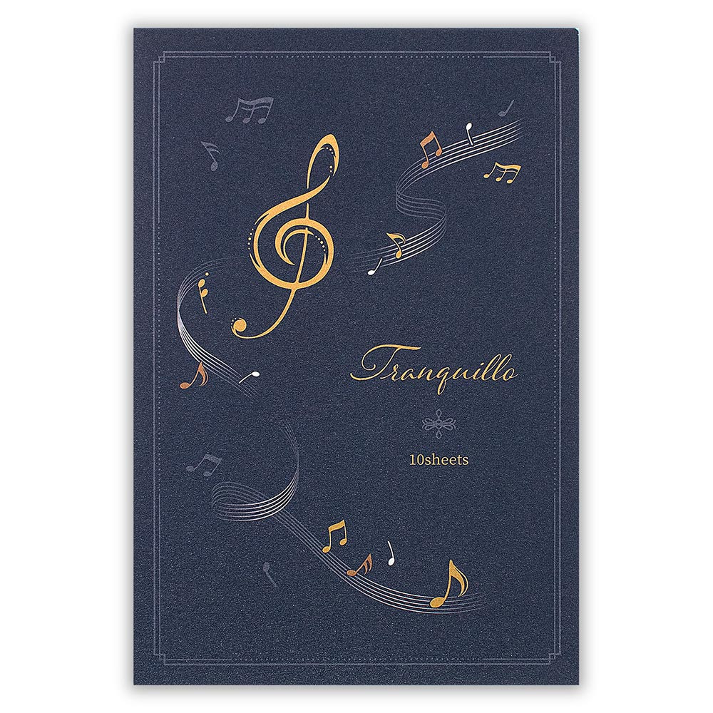 季節を問わずお使いいただける上品なはがき箋です。静かで穏やかな旋律をイメージし、さりげなく装飾された音符がそっとお手紙を彩ります。