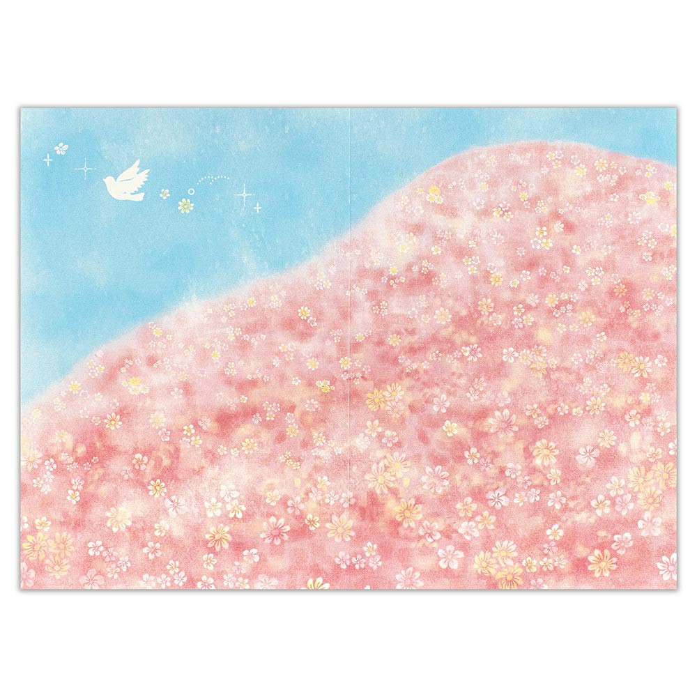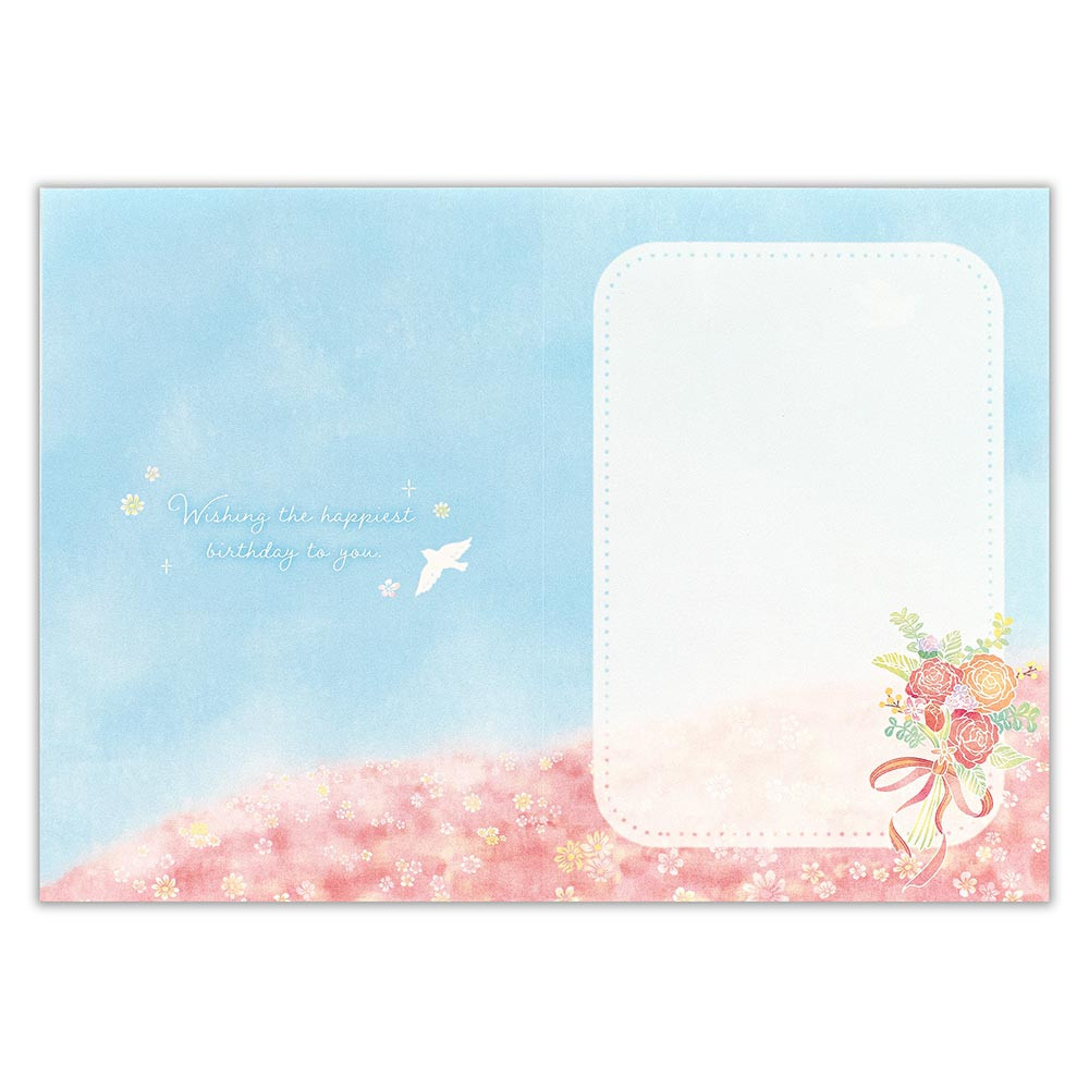 レーザーカットで花束を繊細にデザインし、背景の花畑と重ねることで華やかに仕上げました。