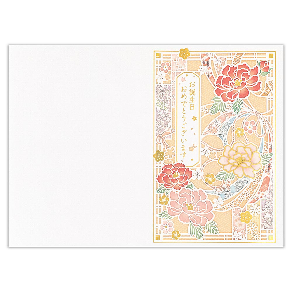繊細なレーザーカットデザインの誕生日カードです。金箔押し加工がきらめきます。