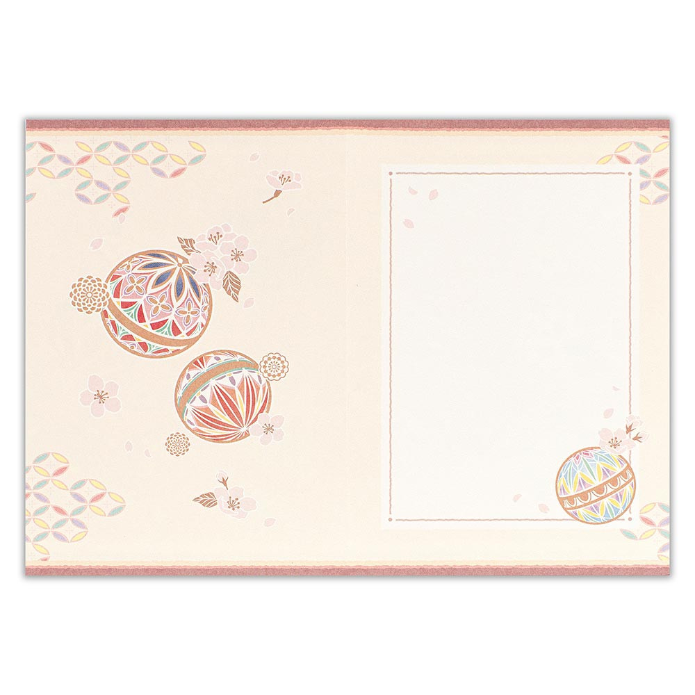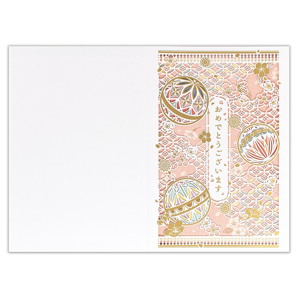 縁起物の鞠と桜を、レーザーカットで華やかに仕上げました。さまざまなお祝い事にお贈りいただけます。