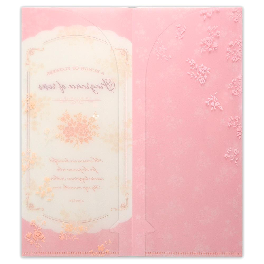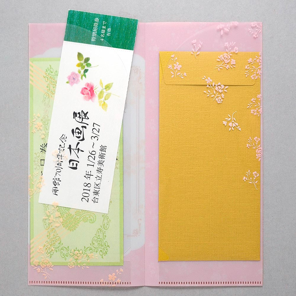 淡い花々の絵柄のチケットホルダーです。 サブバッグやトートバッグにも入る二つ折りタイプです。 地色はピンク色です。