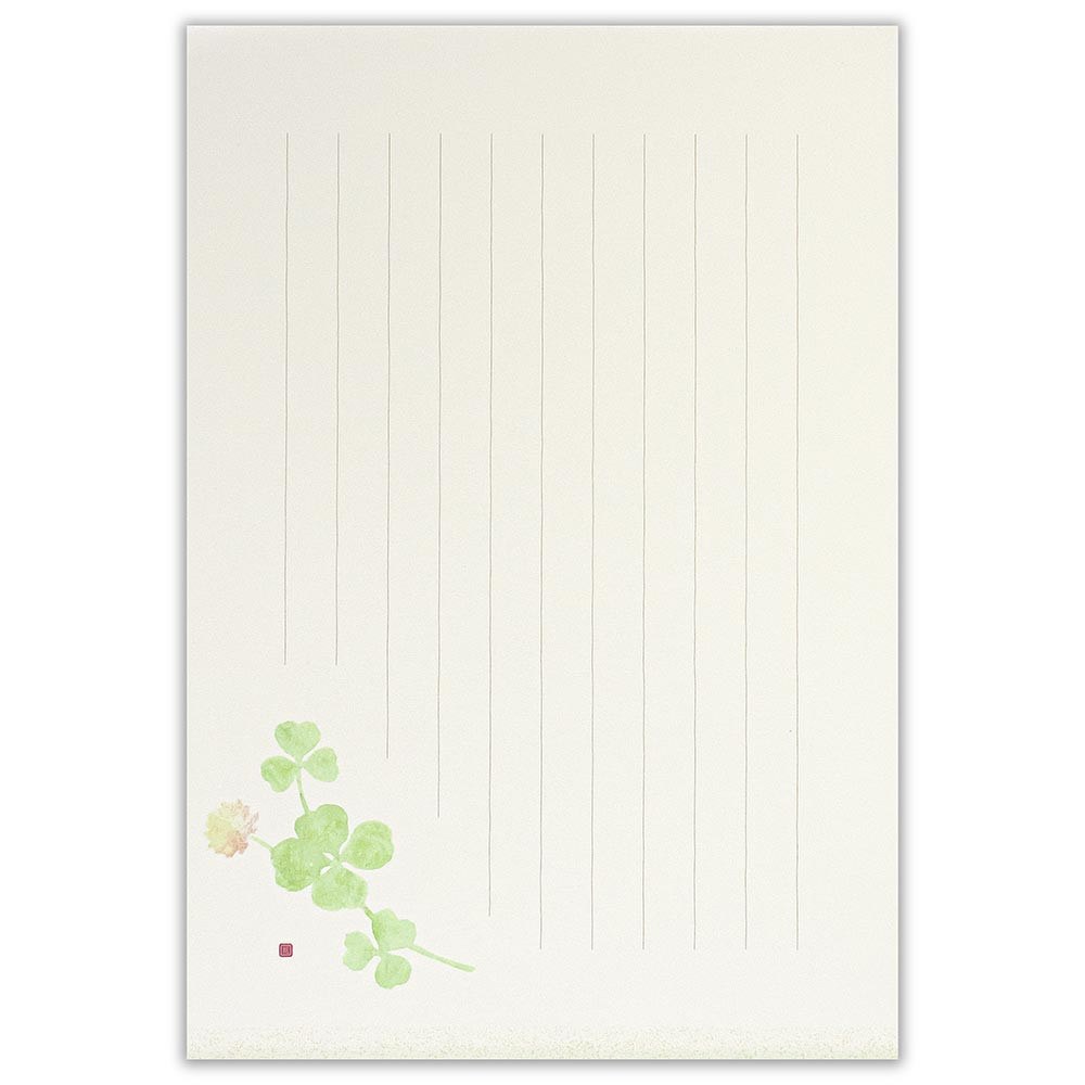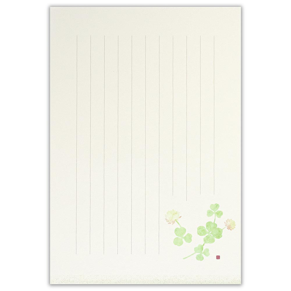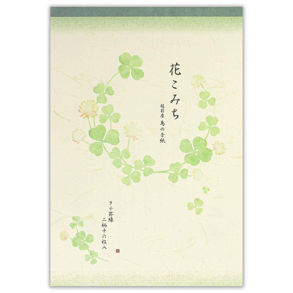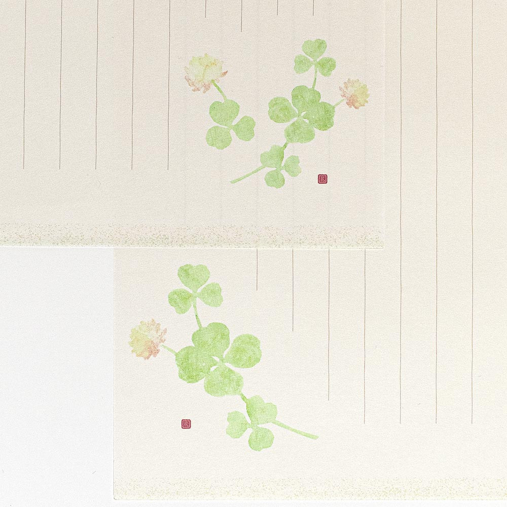 可愛らしい白詰草のイラストが入った和紙便箋です。 柔らかな色調の2色の便箋をアソートしました。 【花】