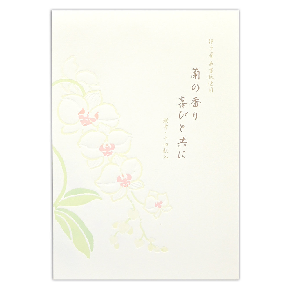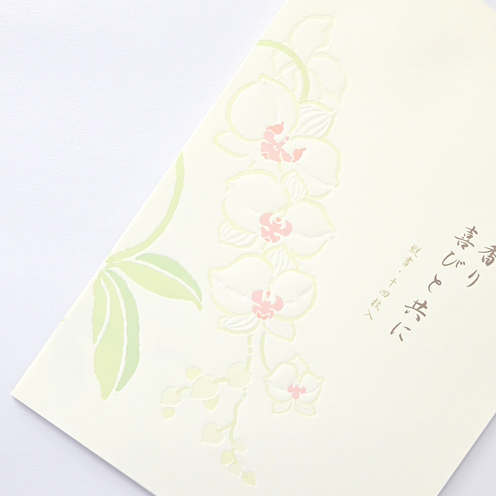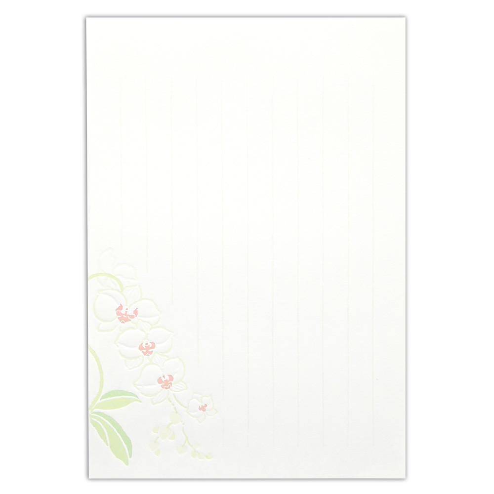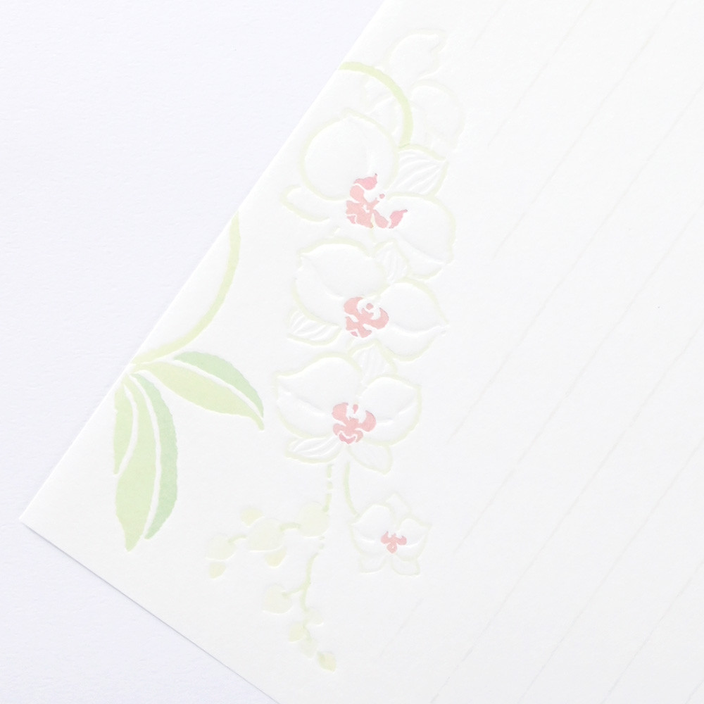 奥行き感のあるデボス加工の気品あふれる蘭のイラストが入った和紙便箋です。 【花】