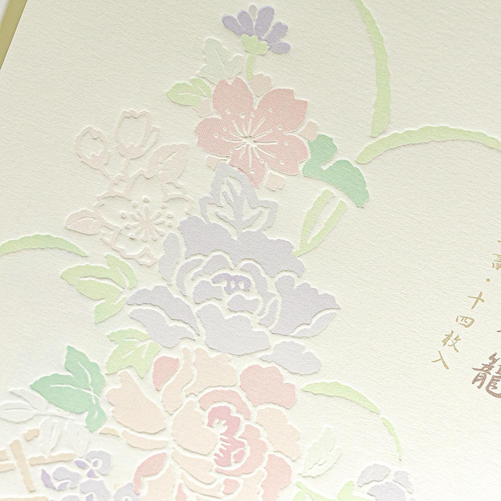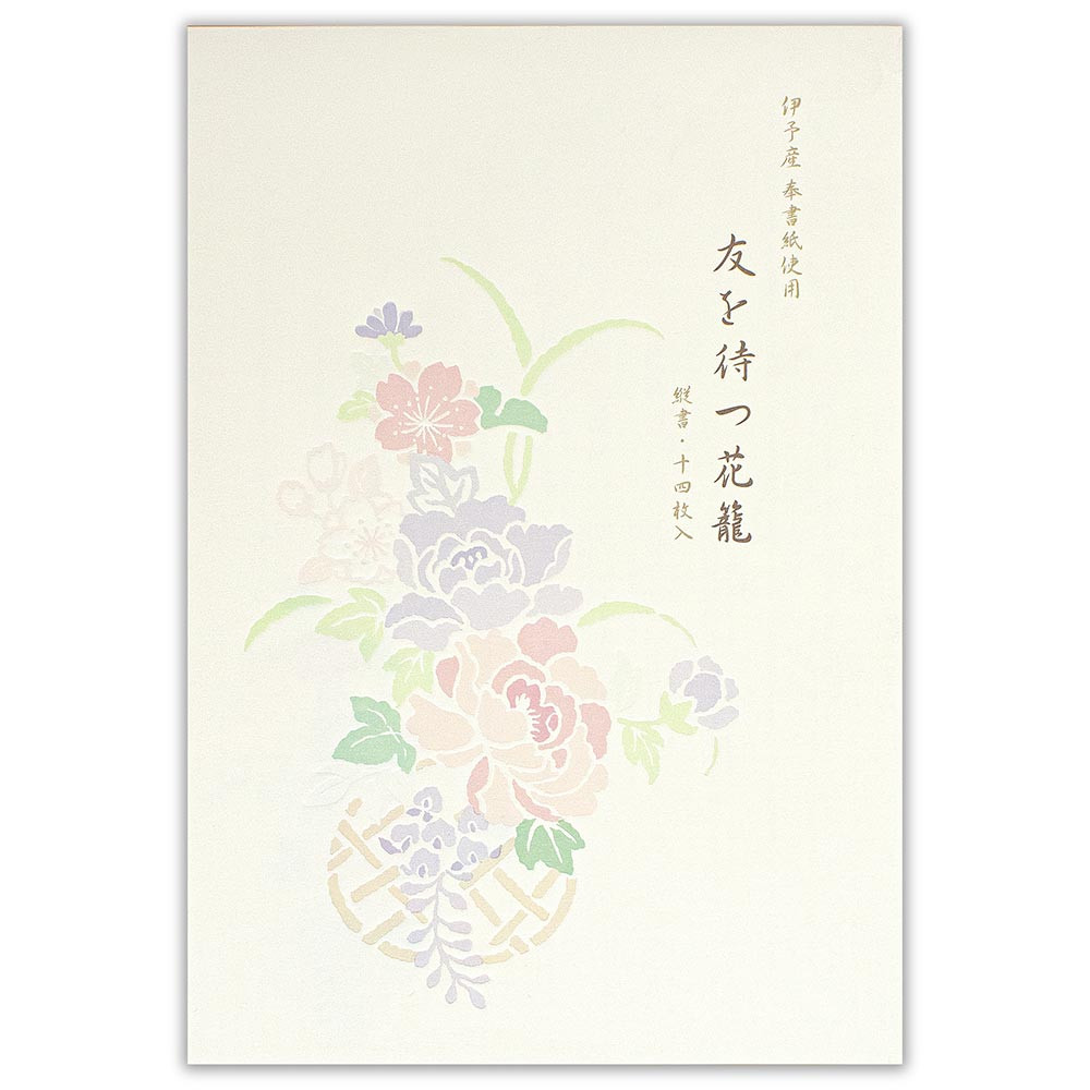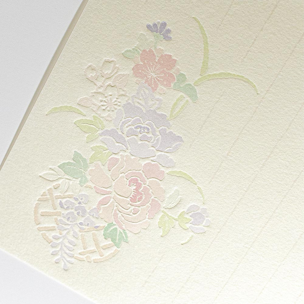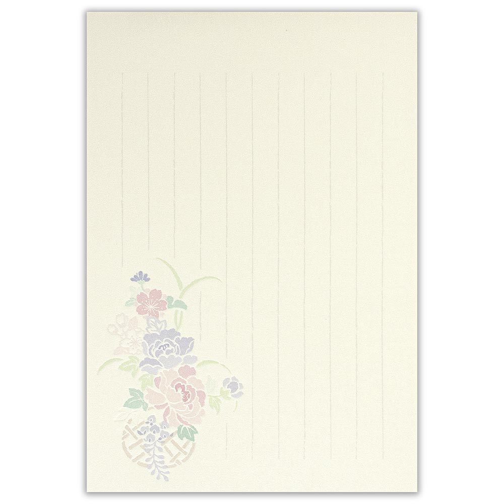 奥行き感のあるデボス加工の花籠のイラストが入った和紙便箋です。