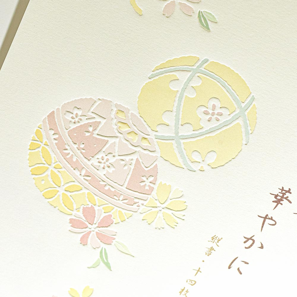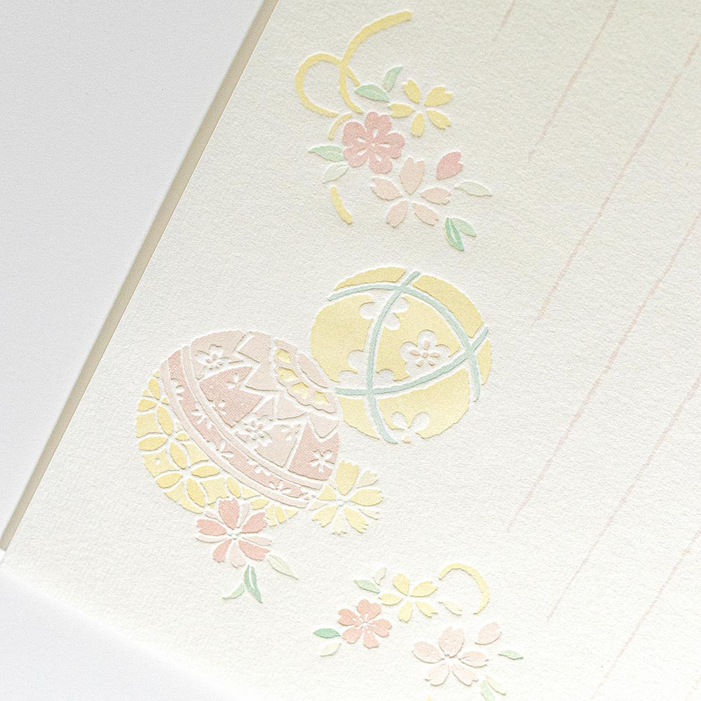 奥行き感のあるデボス加工の可愛い鞠のイラストが入った和紙便箋です。