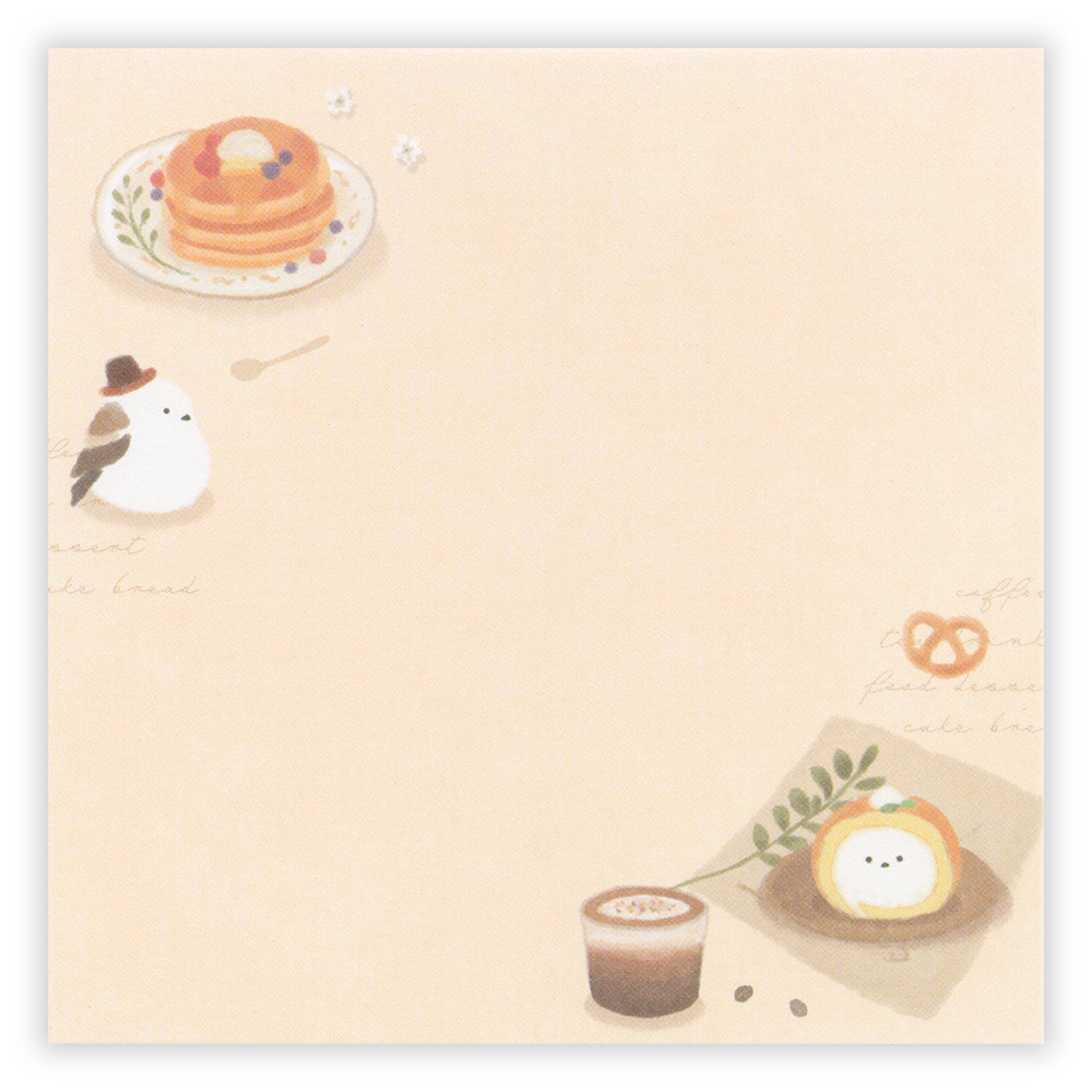 シマエナガがカフェでのんびり過ごすデザインです。