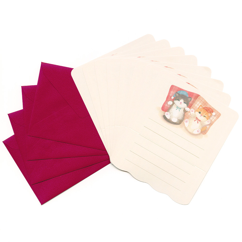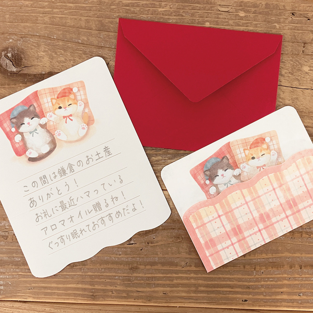 両面印刷の便箋を折ると子猫たちにお布団をかけられます。
