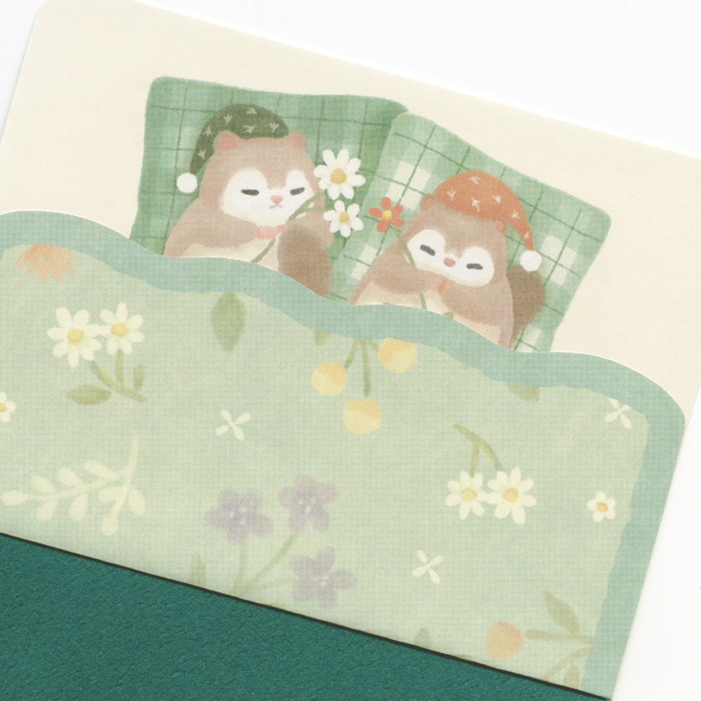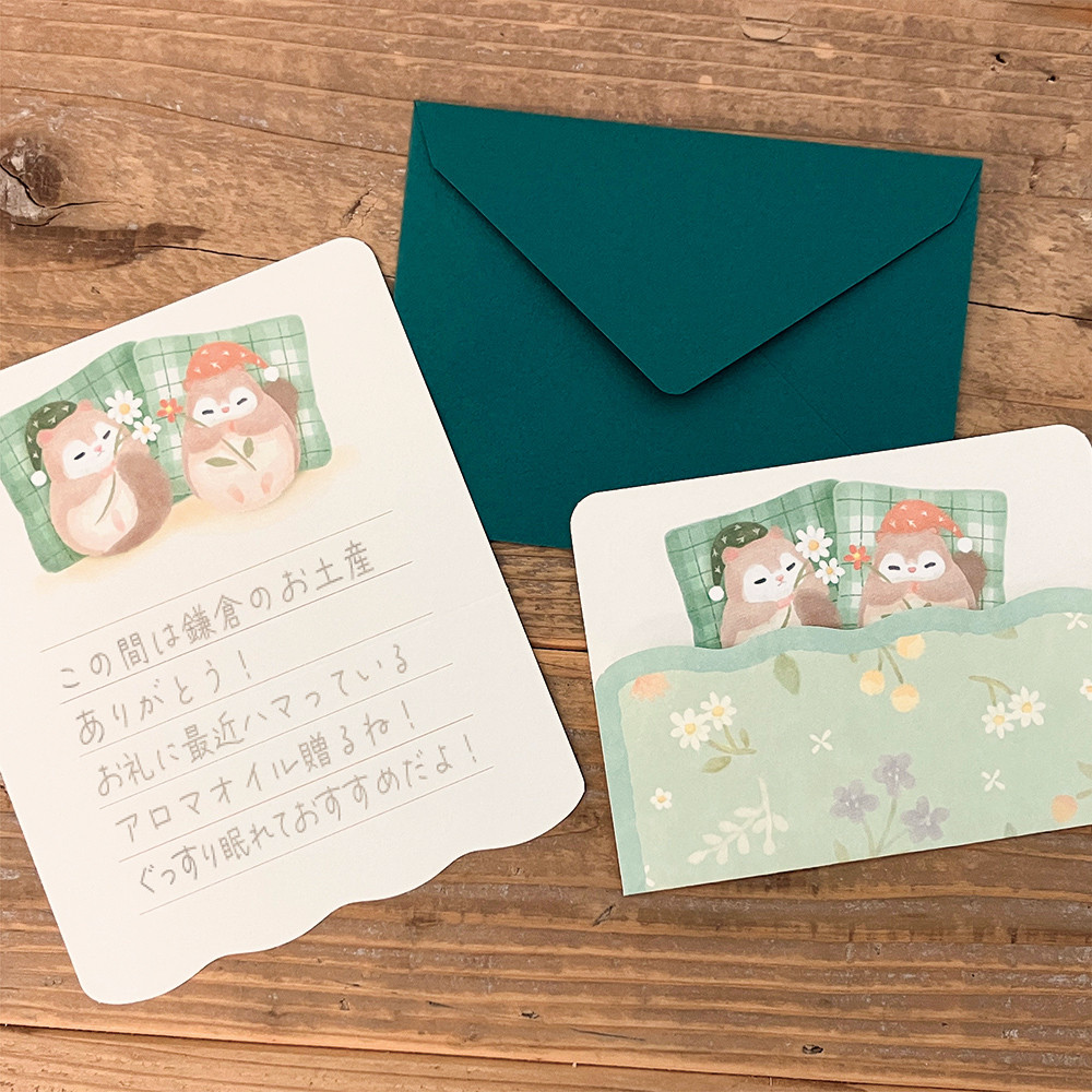両面印刷の便箋を折るとモモンガにお布団をかけられます。