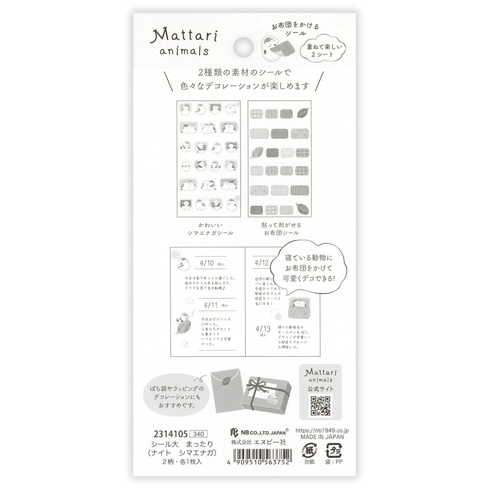 かわいいシマエナガシールとお布団シールの2柄が入ったシールです。