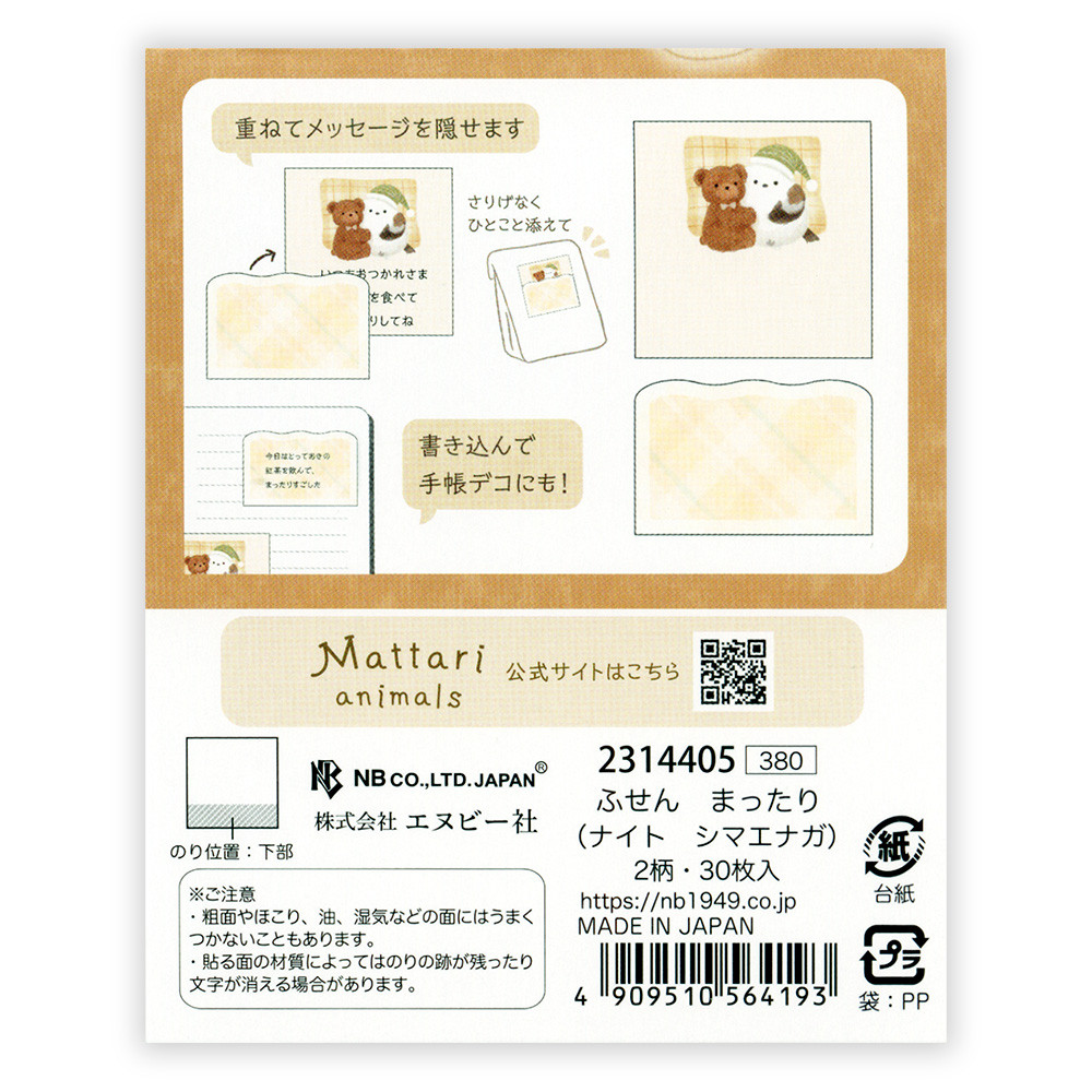 シマエナガが描かれた正方形のふせんにお布団柄のダイカットふせんを重ねることで、メッセージを隠すことができます。