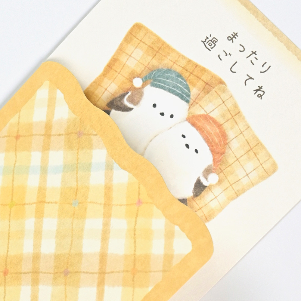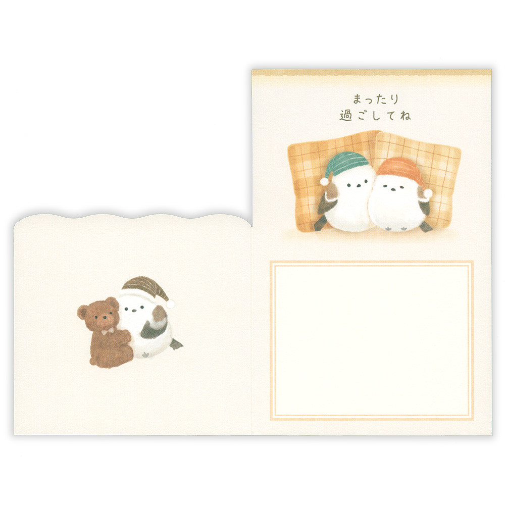 お布団でまったりするシマエナガに癒されるカード。
