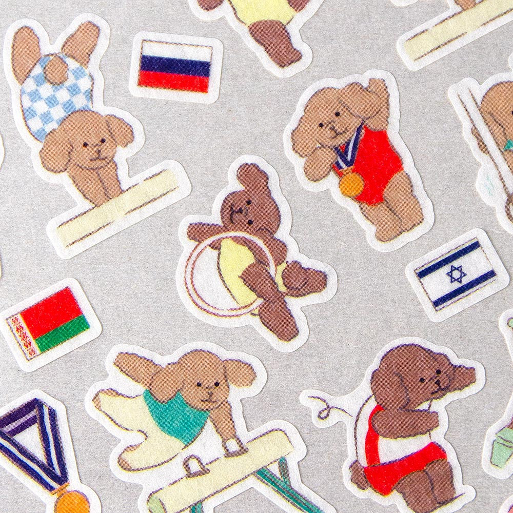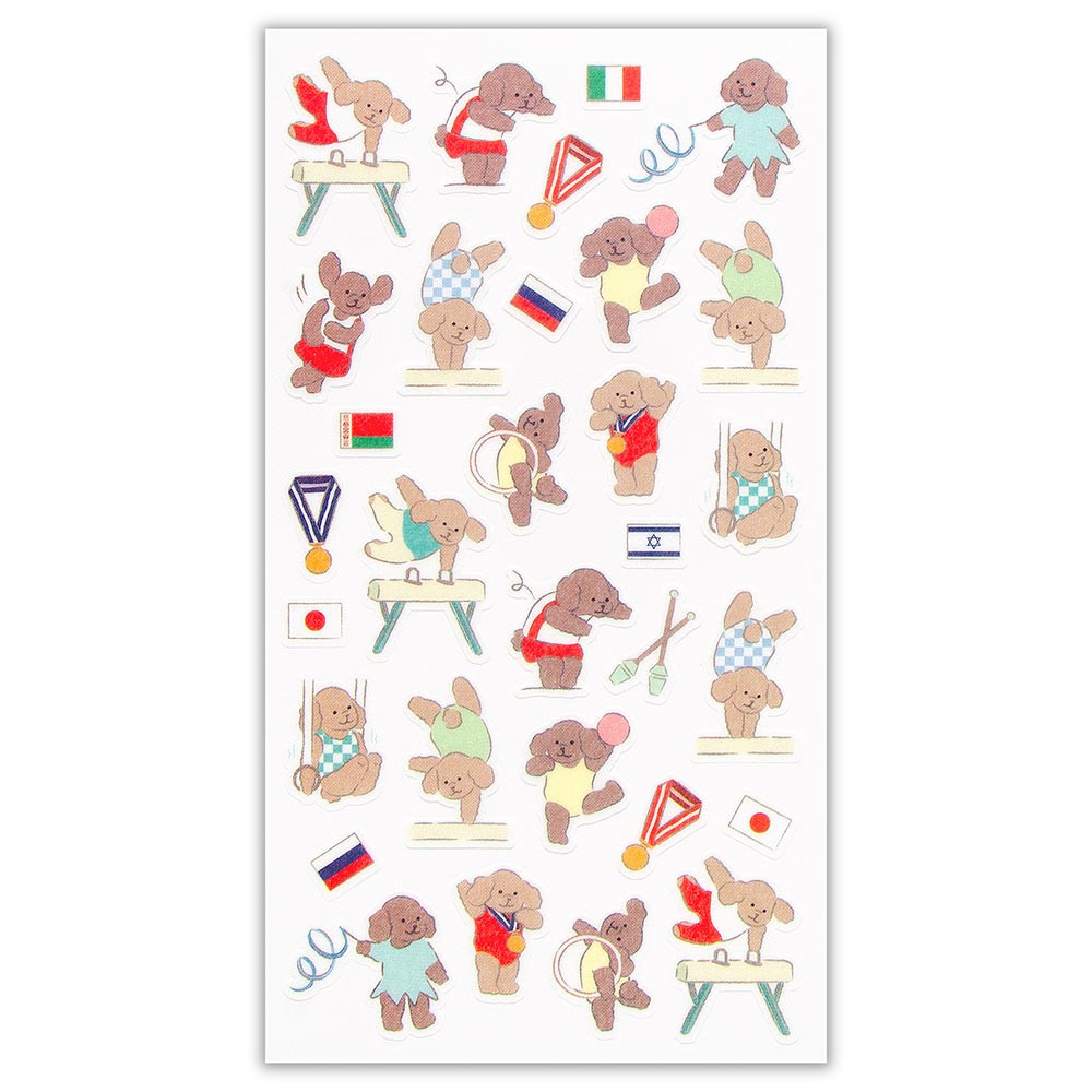 体操をするトイ・プードルのシールです。