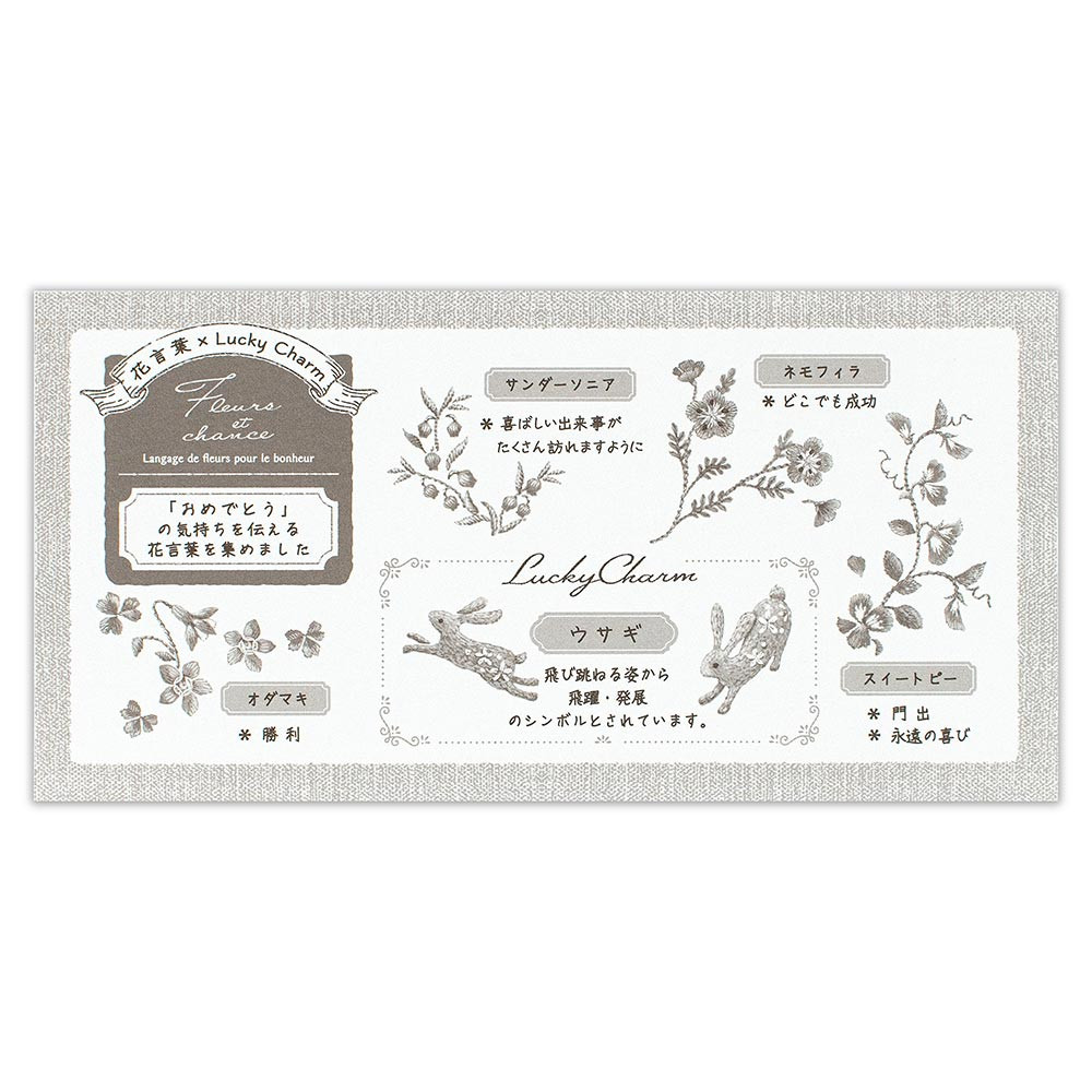 花言葉からセレクトした花たちとラッキーチャームを描いたシリーズ。
