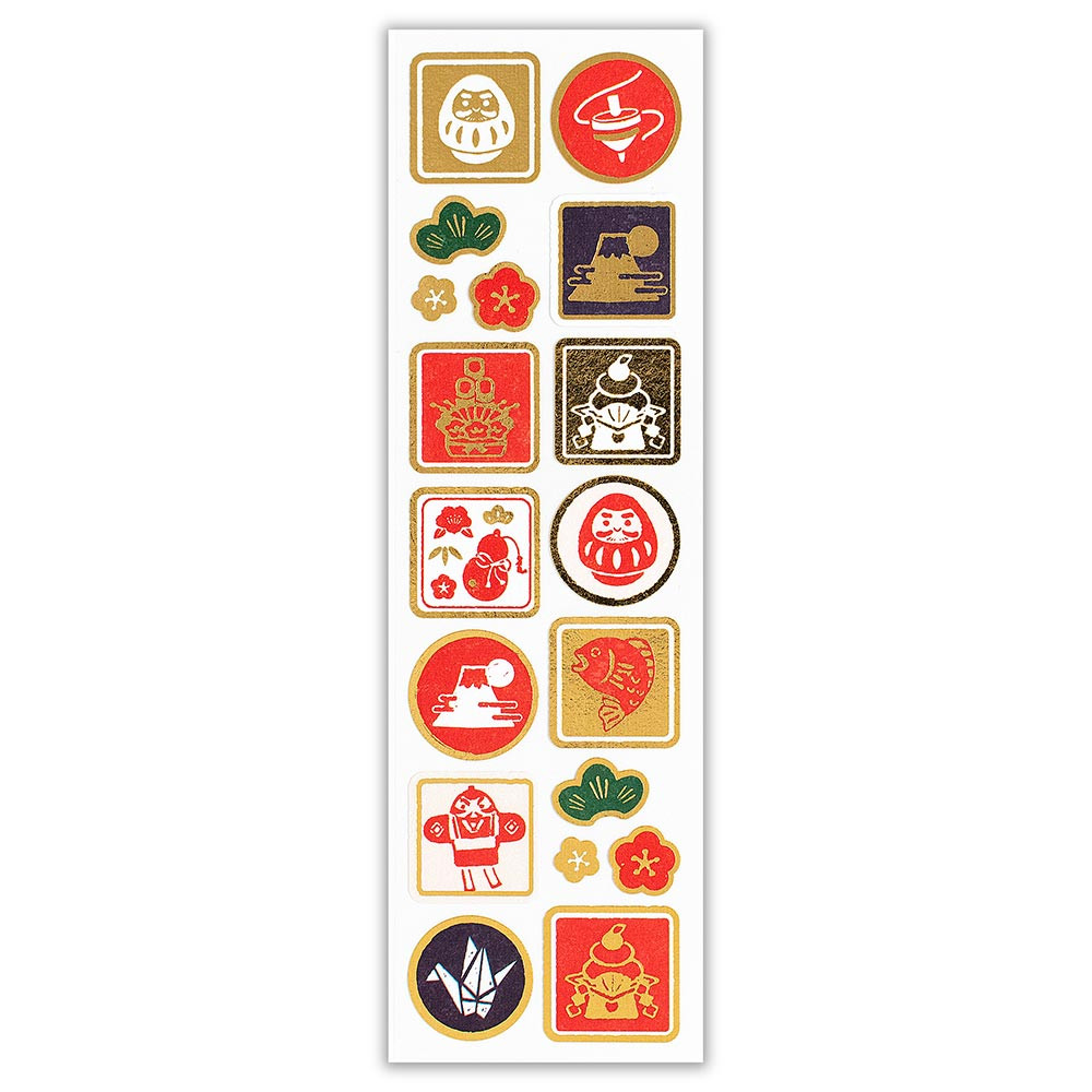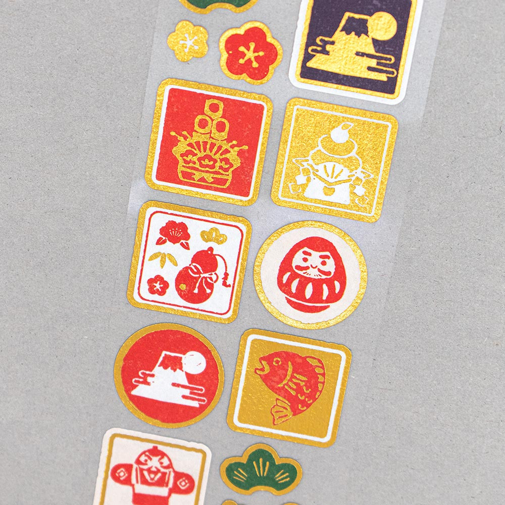すっきりとした色合いで、縁起良くおめでたいシールに仕上げています。