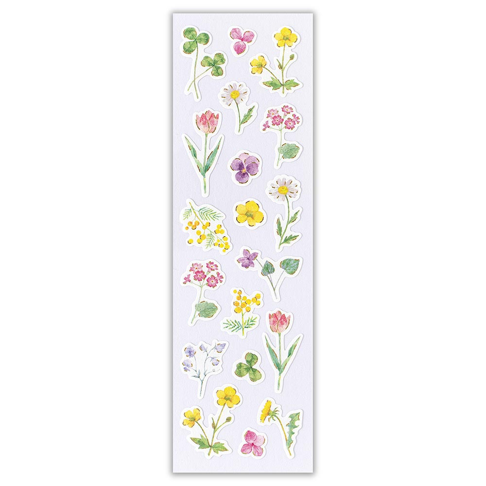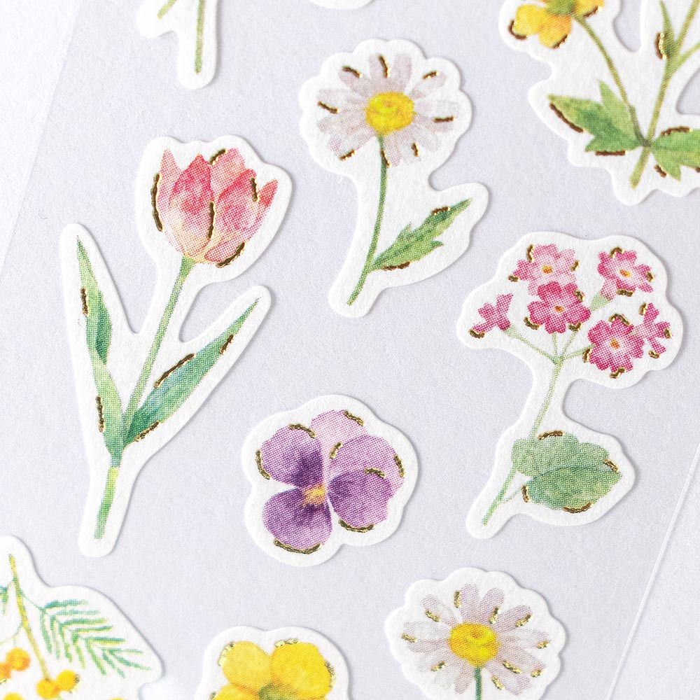 風合いのある和紙に金箔が輝く、和風シールです。 春の花々を優しいタッチで描きました。 お手紙の封緘やデコレーションにおすすめです。