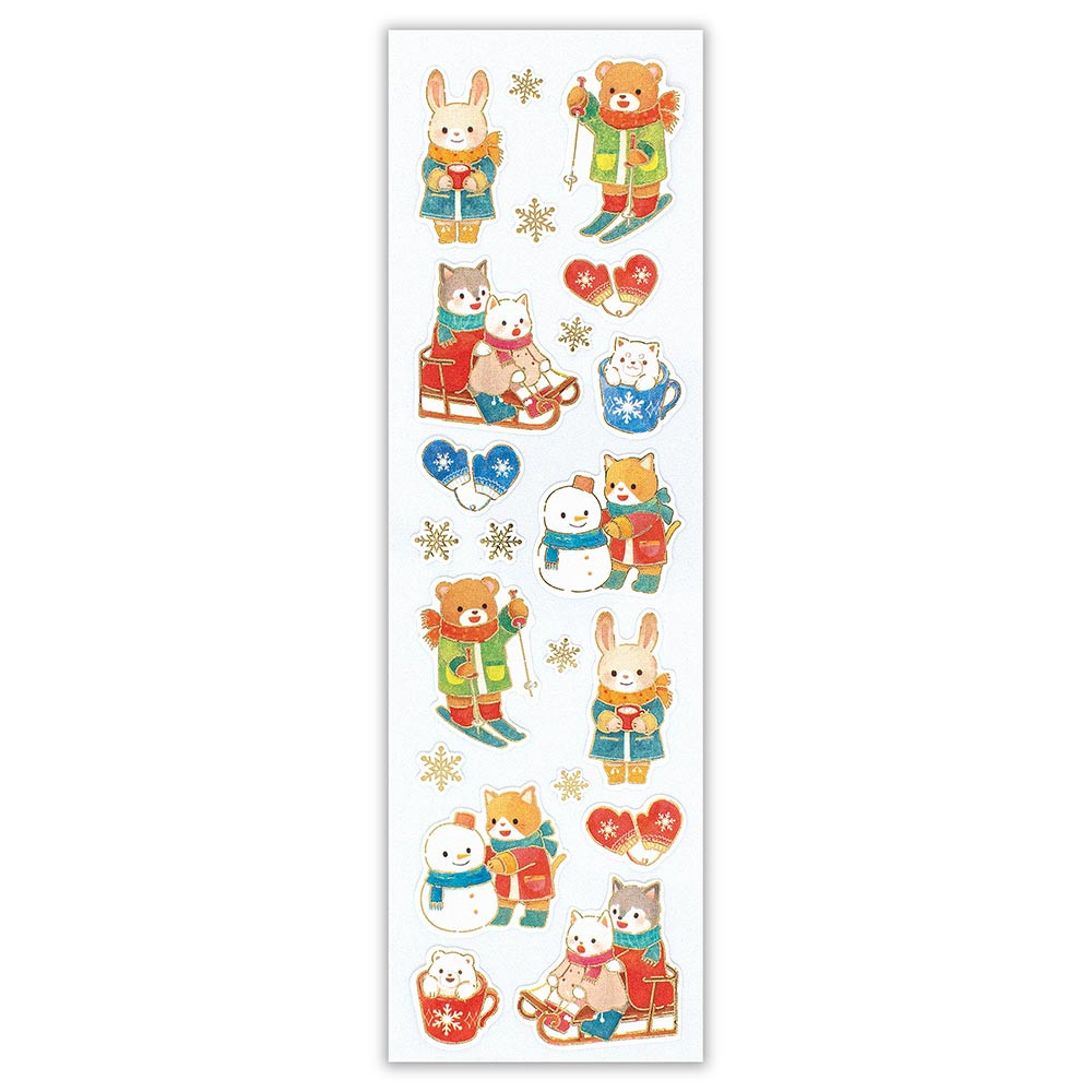 風合いのある和紙に金箔が輝く、冬柄の和風シールです。