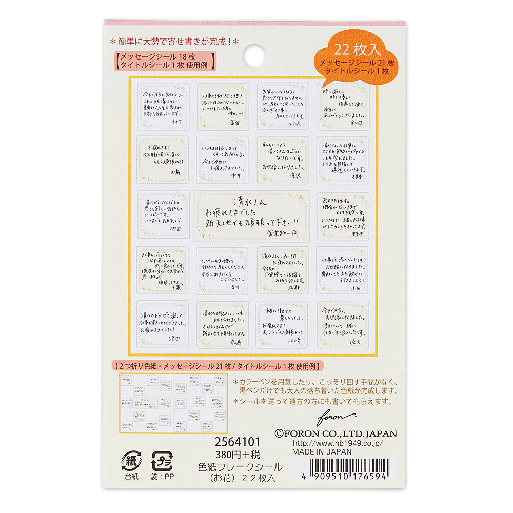 シールを配るだけで、簡単に大勢で寄せ書きができる便利な色紙シールです。