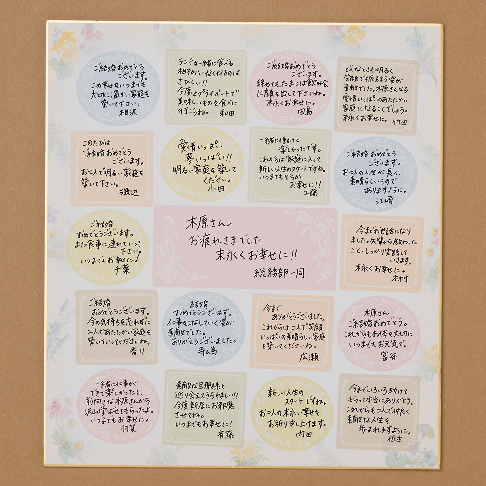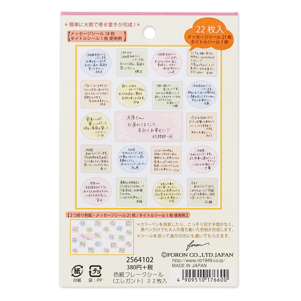 シールを配るだけで、簡単に大勢で寄せ書きができる便利な色紙シールです。