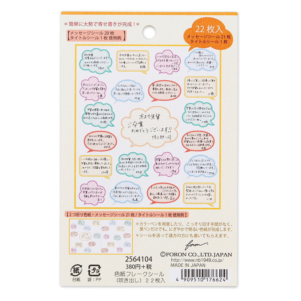 カラフルな吹き出し型のシールです。色紙に貼るのはもちろん、アルバムのデコレーション用にもお使いいただけます。
