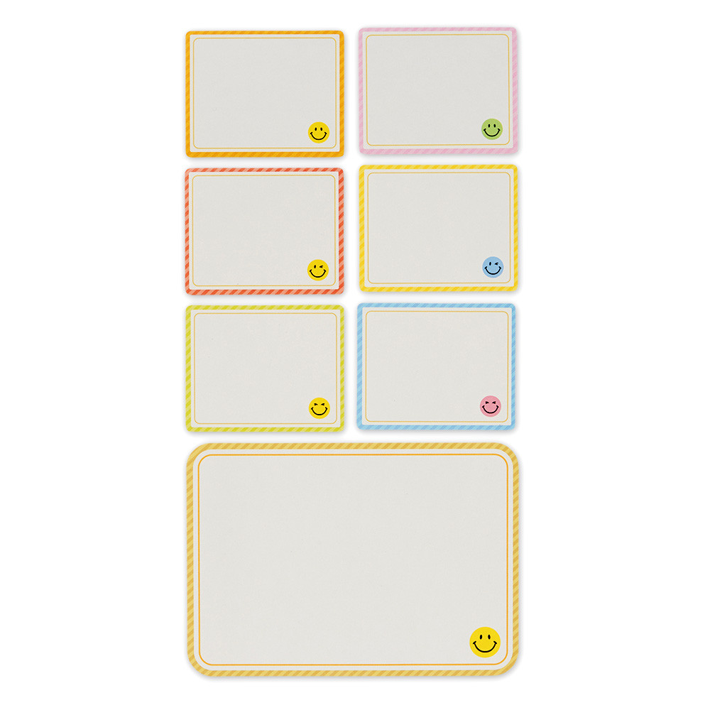 スマイルマークの入ったカラフルなシールです。色紙に貼るのはもちろん、アルバムのデコレーション用にもお使いいただけます。