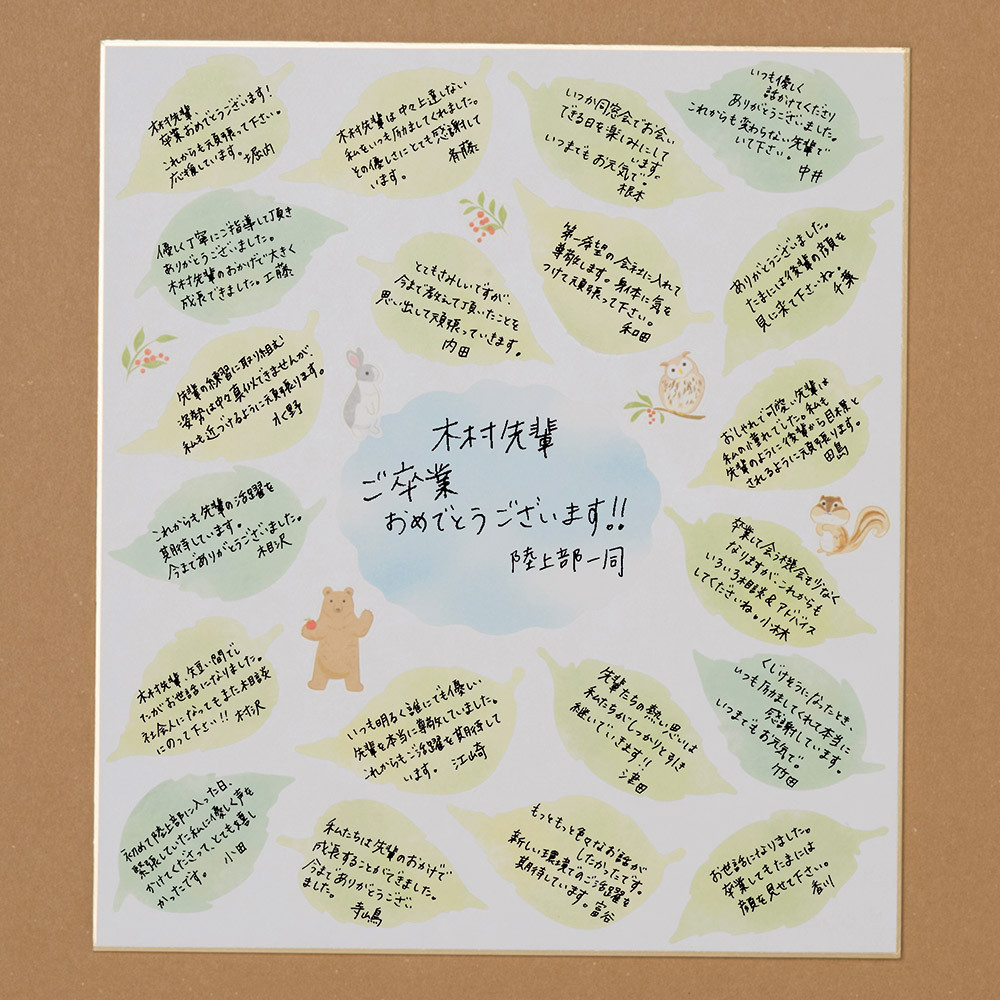 シールを配るだけで、簡単に大勢で寄せ書きができる便利な色紙シールです。