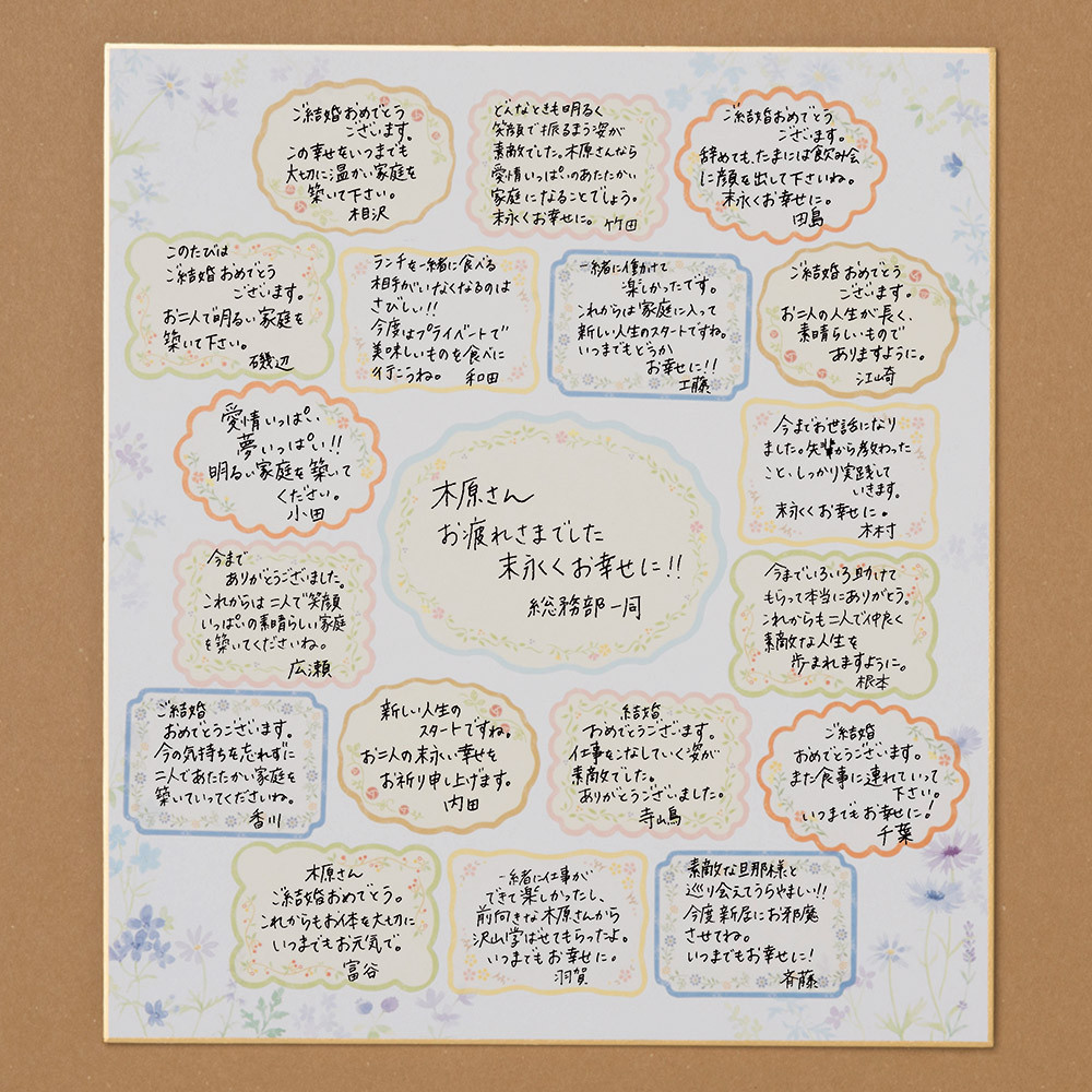 シールを配るだけで、簡単に大勢で寄せ書きができる便利な色紙シールです。上品で愛らしい小花柄シールです。色紙に貼るのはもちろん、アルバムのデコレーション用にもお使いいただけます。【花】【色紙シール】