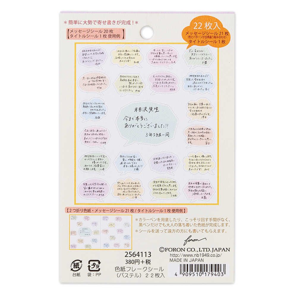 シールを配るだけで、簡単に大勢で寄せ書きができる便利な色紙シールです。