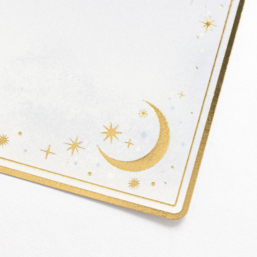 月と星々を金箔押しで華やかに彩ったデザインです。
