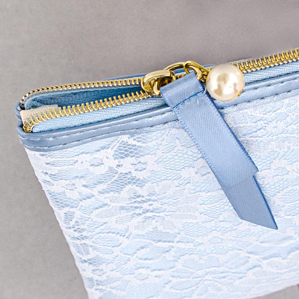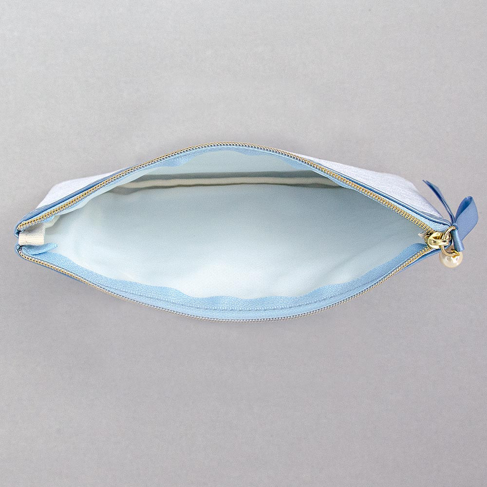優しいブルーのポーチで、結婚式を迎える新郎新婦へ「サムシングブルー」の贈り物としてもおすすめです。