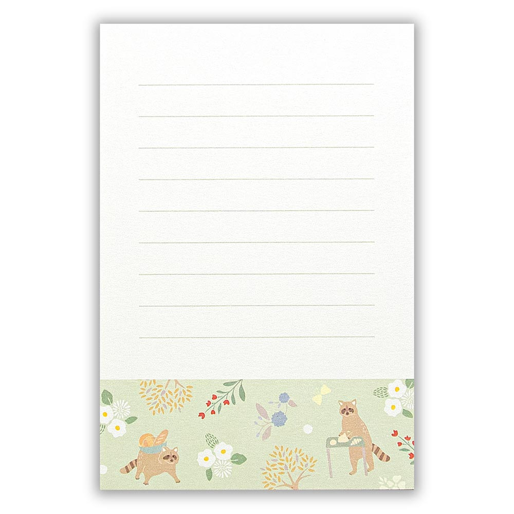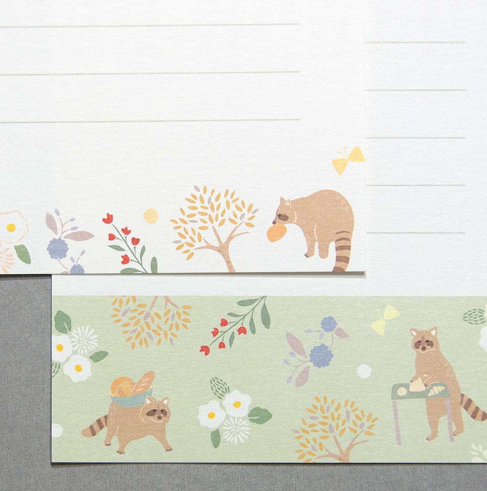 山に住む動物たちの暮らしを楽しく描いたポストカードです。 2柄入りで楽しみが広がります。 パン職人アライグマ 【花】
